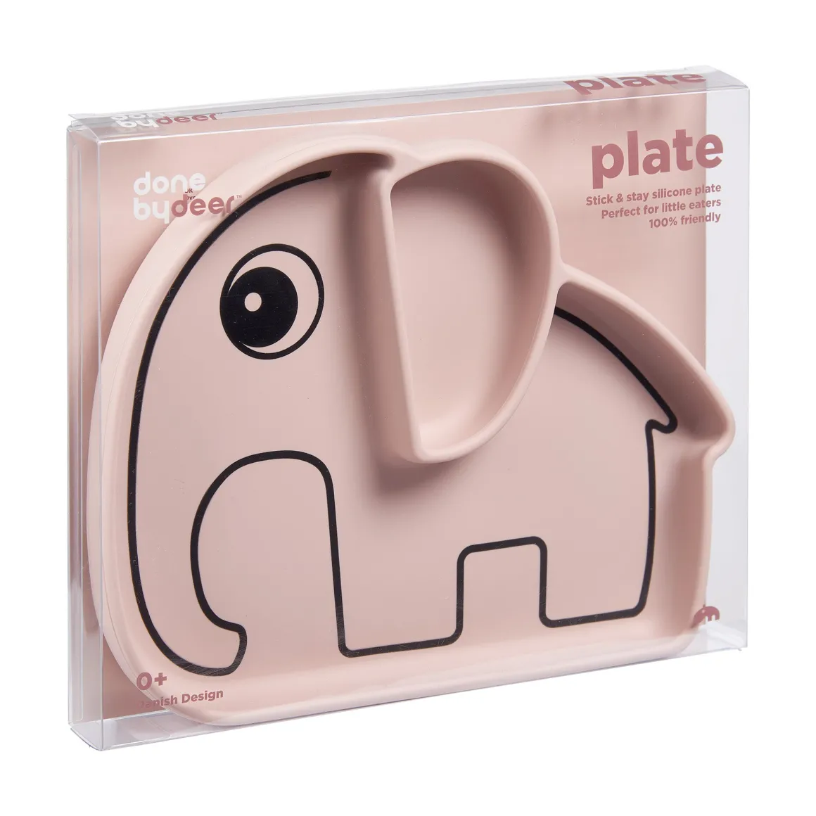 Elphee est prêt à rendre les repas amusants ! L’assiette Rose stick & stay avec ses deux compartiments pratiques restera en place et aidera les petits mangeurs à maîtriser leurs compétences alimentaires.