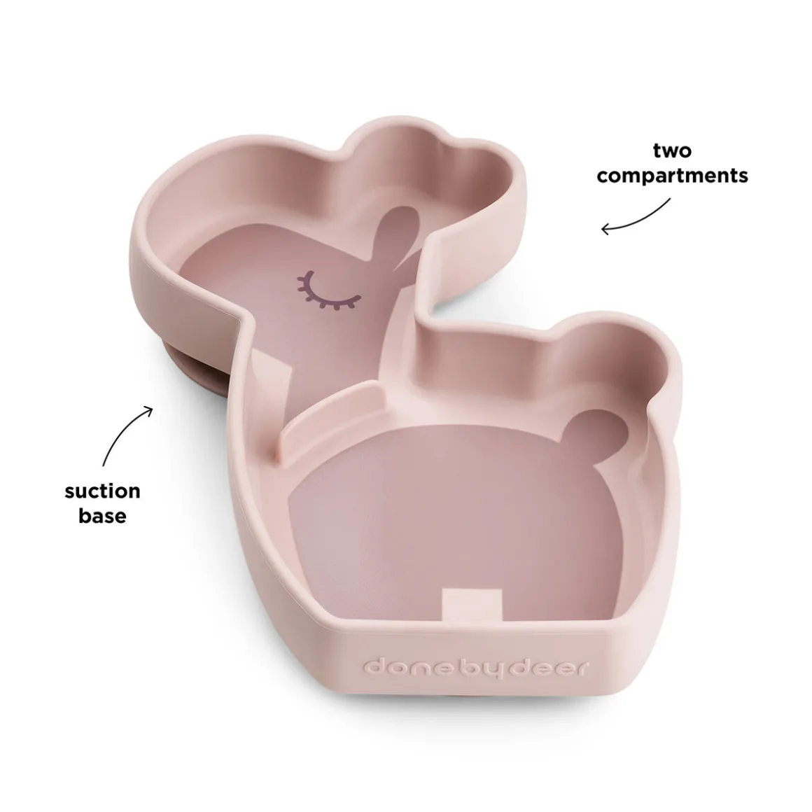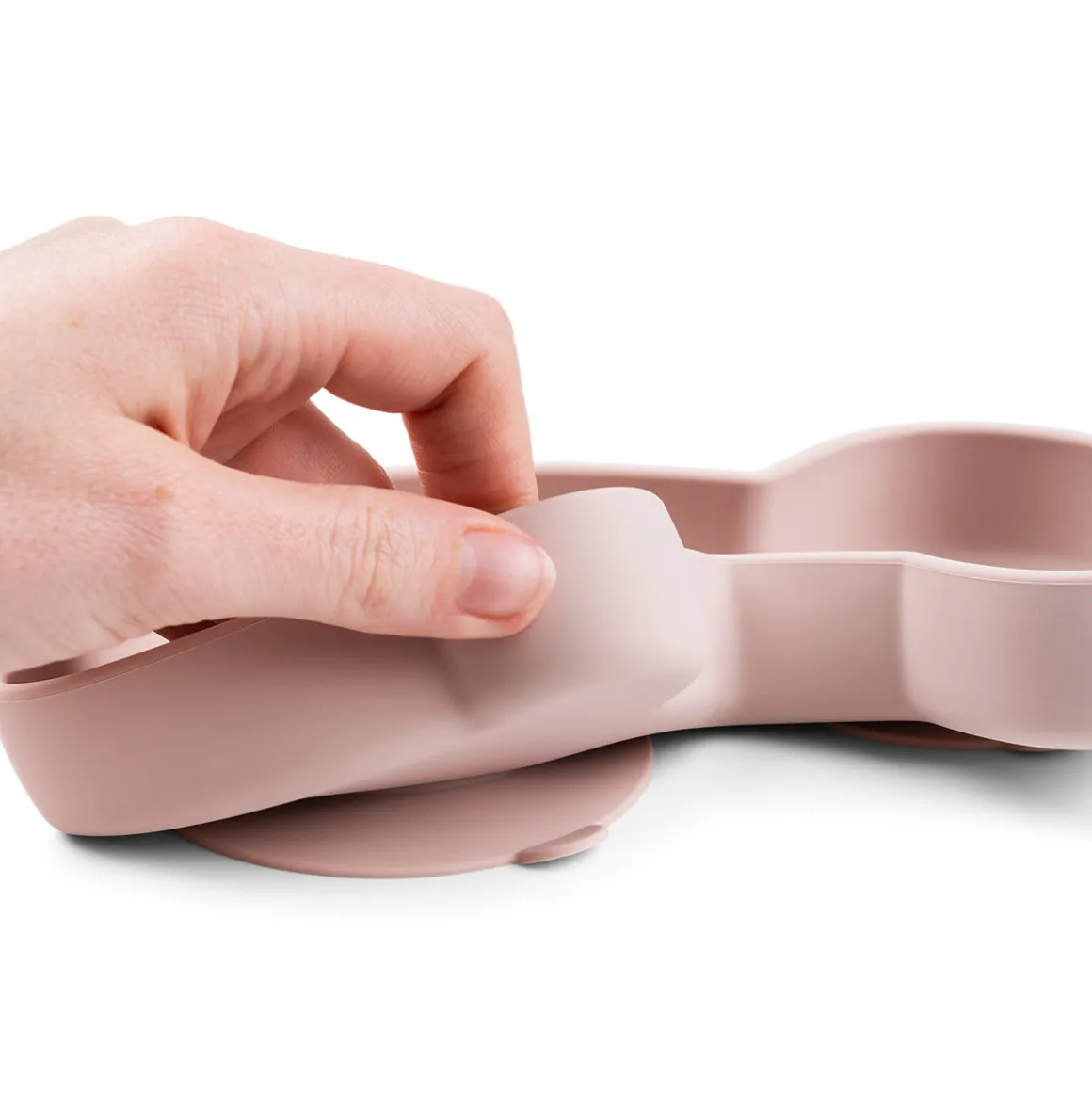 – La base à ventouses empêche les enfants de pousser, de faire basculer ou de jeter l’assiette.