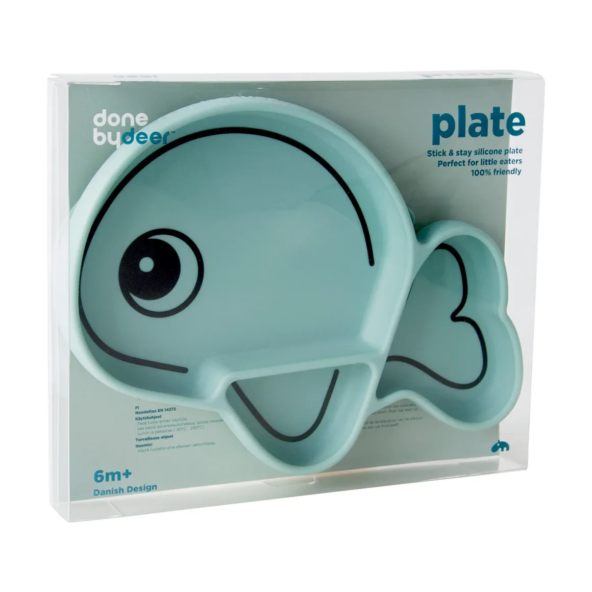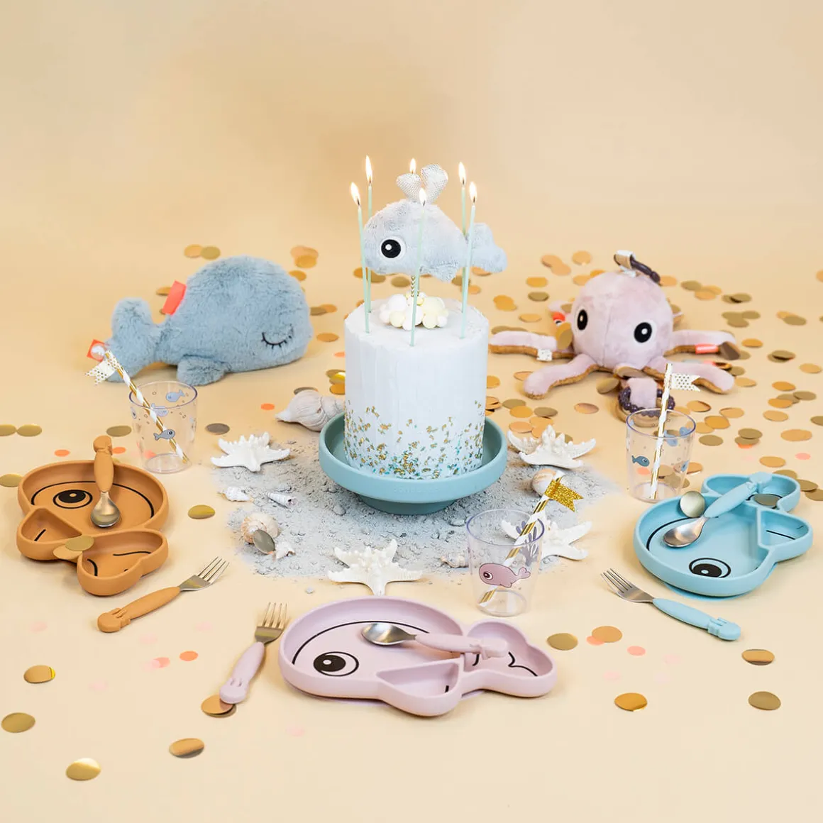 L’assiette pratique pour enfants est d’un bleu pastel doux avec une impression de contour noir. La forme de Wally la baleine la rend encore plus amusante à utiliser. Avec ses caractéristiques pratiques et son design mignon, cette assiette à compartiments est parfaite pour un enfant qui commence à s’alimenter tout seul.