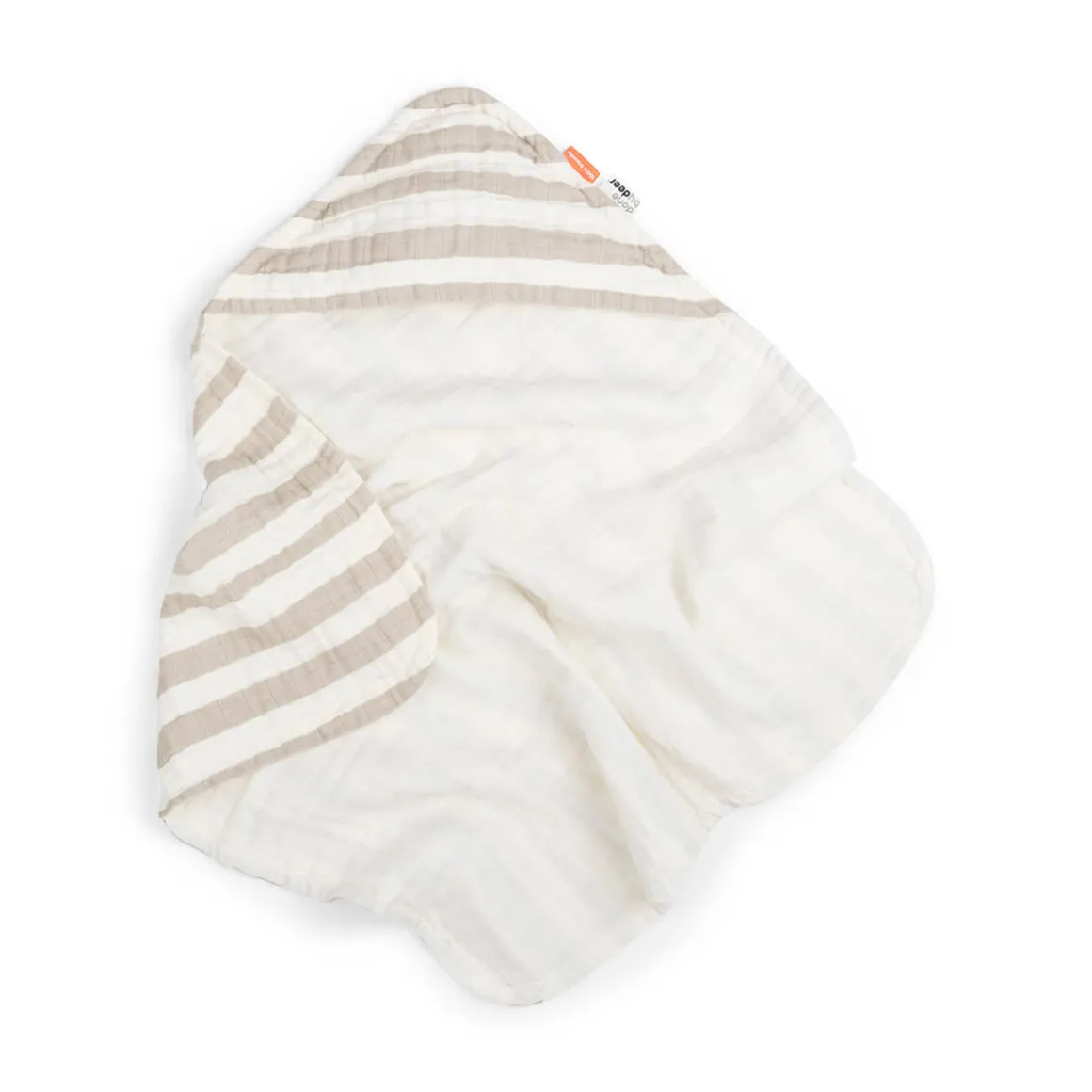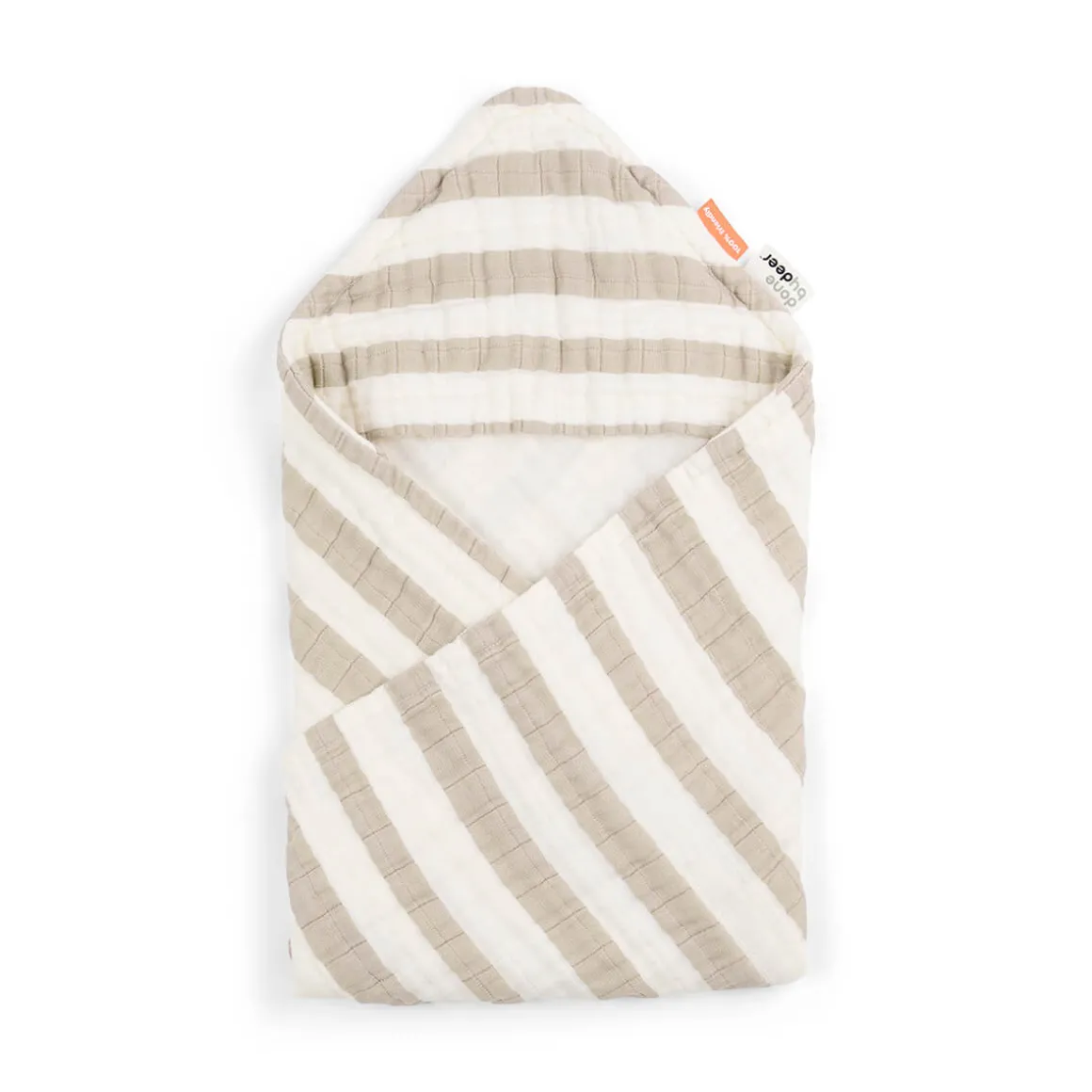 La serviette à capuche à larges rayures est parfaite pour envelopper et sécher votre enfant après un beau bain. La serviette en coton biologique multicouche est légère, douce sur la peau et sèchera rapidement lors d’une sortie à la plage.