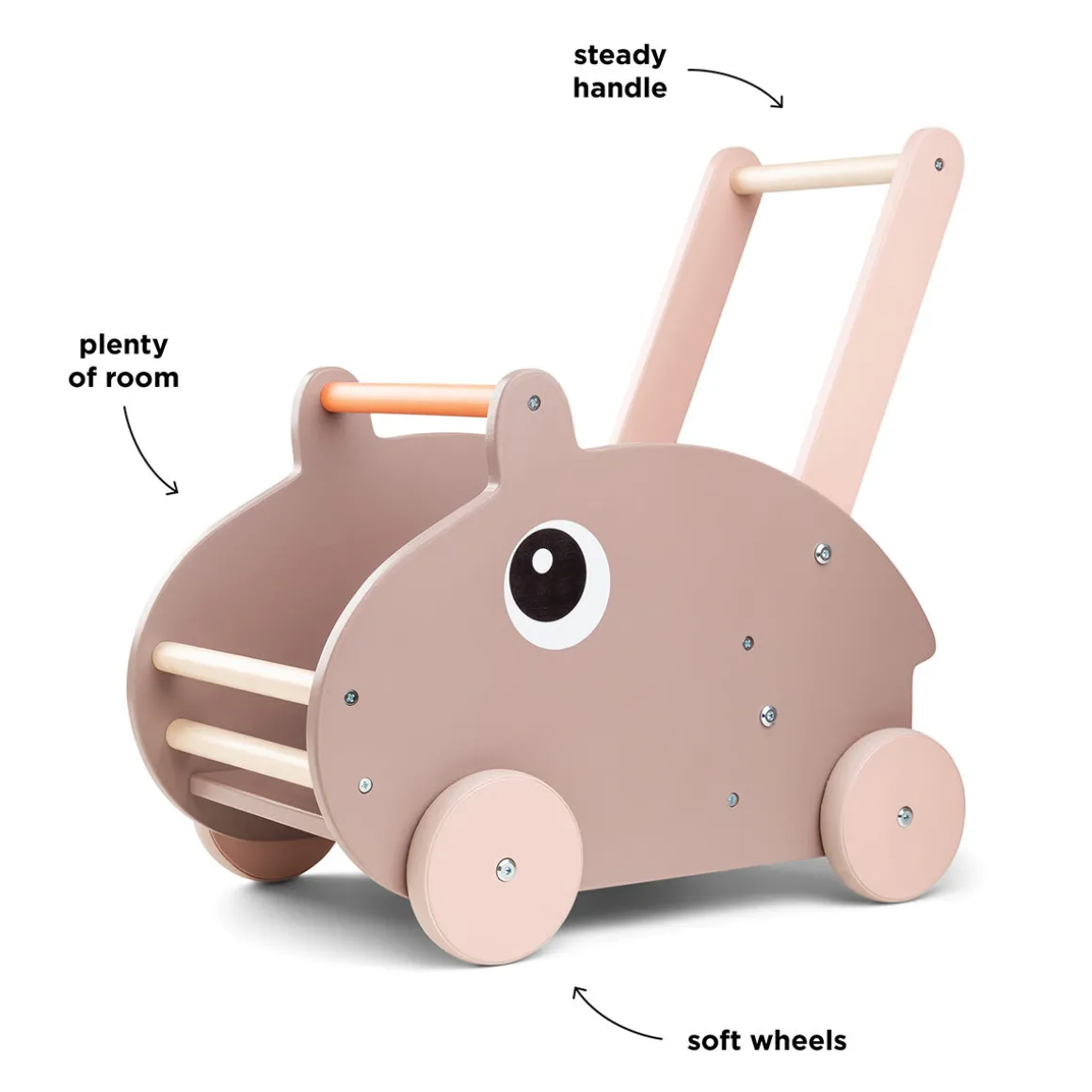 Grâce à sa poignée stable et à ses roues souples qui ménagent les sols, il permet à votre enfant de marcher et de jouer en toute sécurité. Fabriqué en bois issu de sources responsables et peint avec une peinture à base d’eau, le chariot de marche Ozzo est un choix idéal pour encourager les premiers pas et favoriser les jeux imaginatifs.