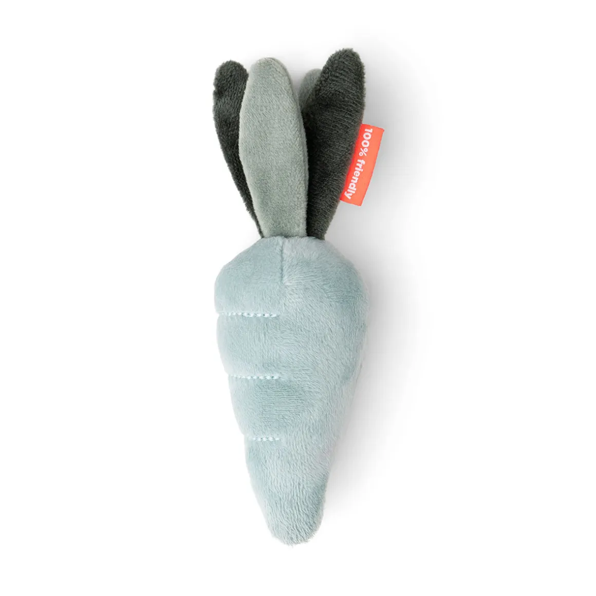 – Un anneau de dentition en silicone, un hochet qui couine et une carotte avec des feuilles qui se froissent.