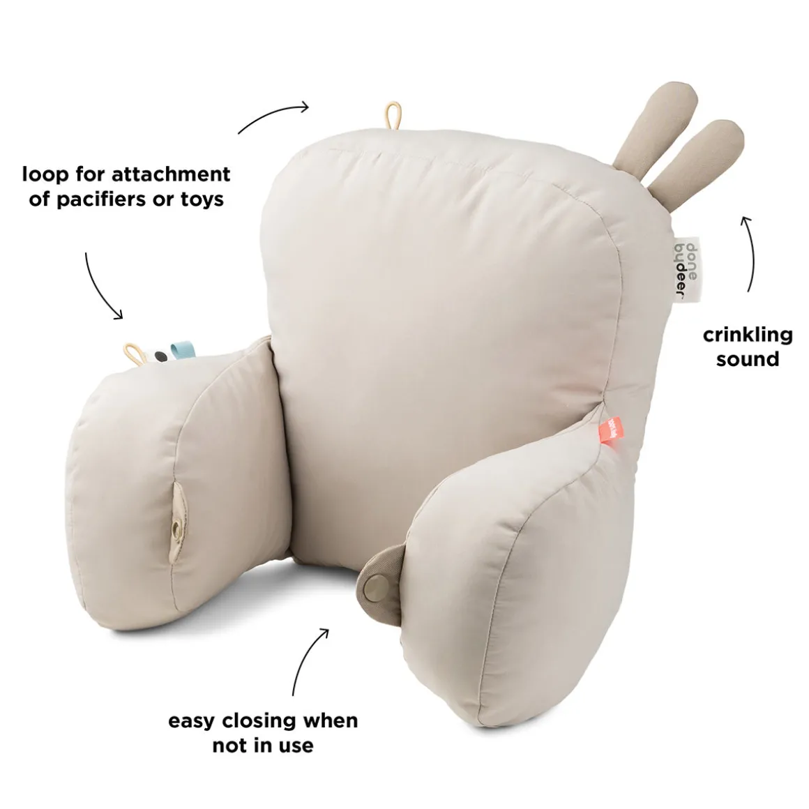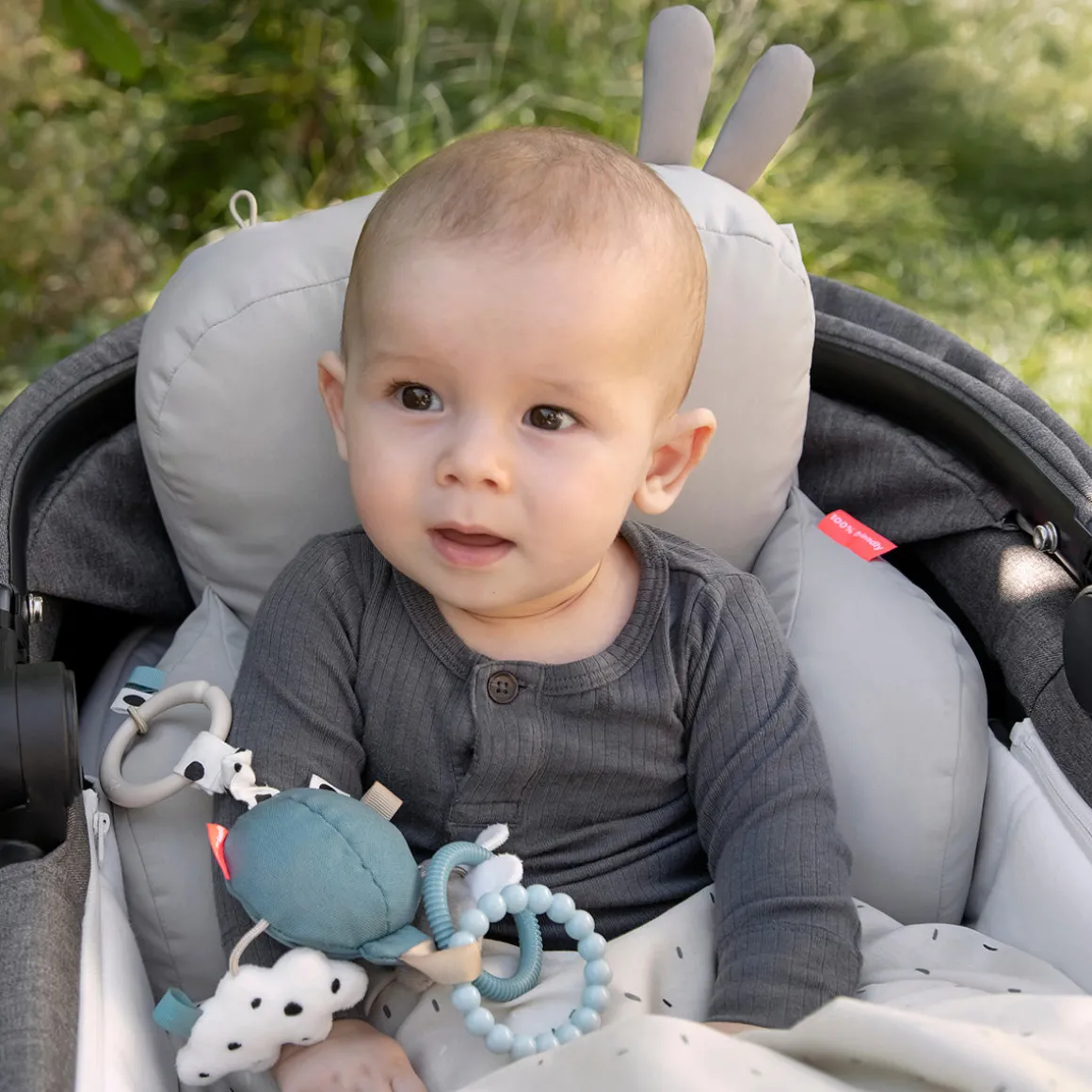 – Boucle élastique pour attacher les jouets à la poussette