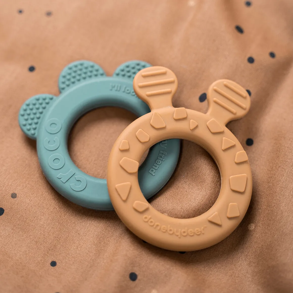 – Anneau de dentition en silicone souple pour stimuler et apaiser les démangeaisons des gencives.