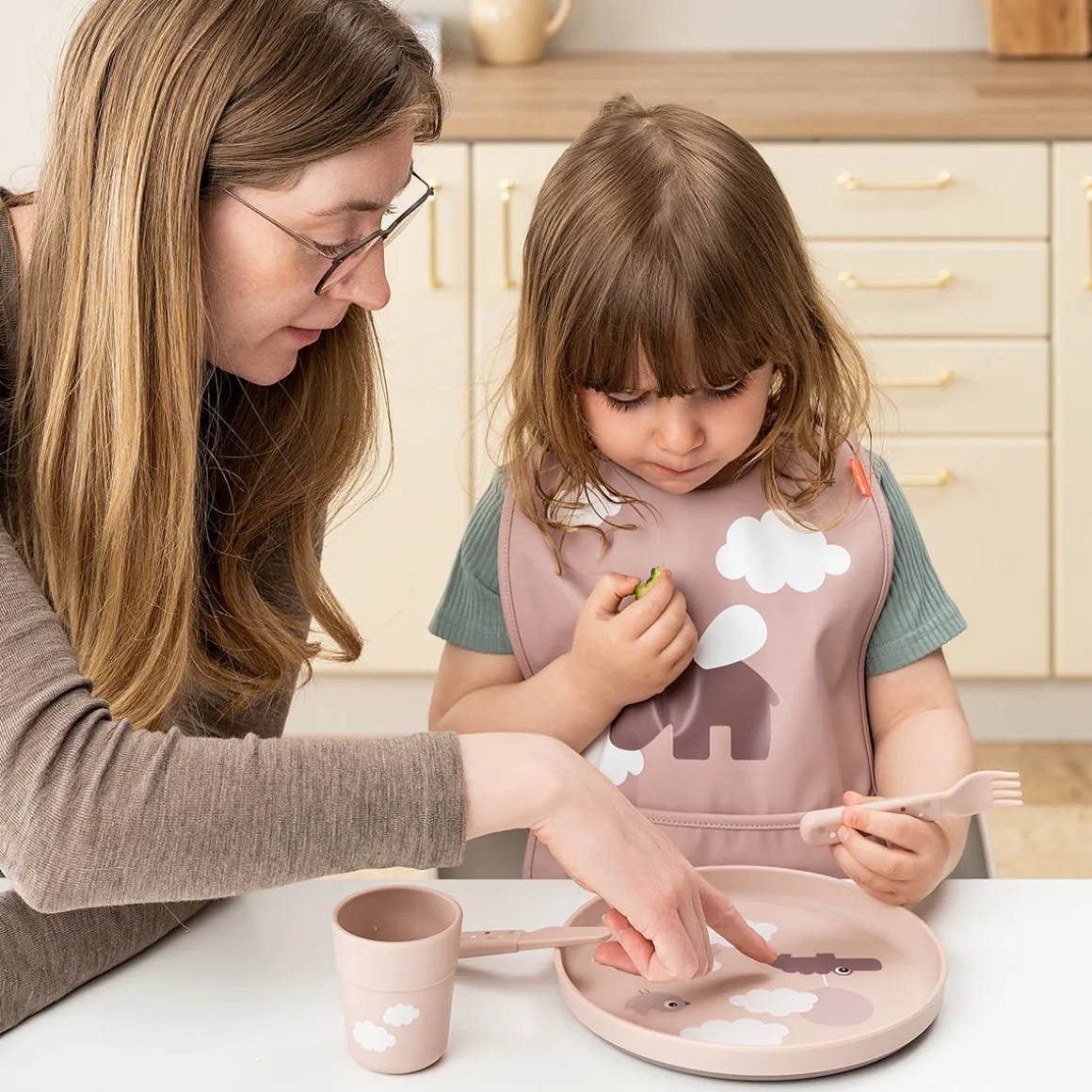 L’assiette Rose est imprimée d’un motif ludique Happy Clouds. Croco, Ozzo et Birdee explorent le monde parmi les nuages et inviteront votre enfant à découvrir de nouvelles saveurs et consistances. La poudre plus foncée de la base ajoute un joli détail bicolore.