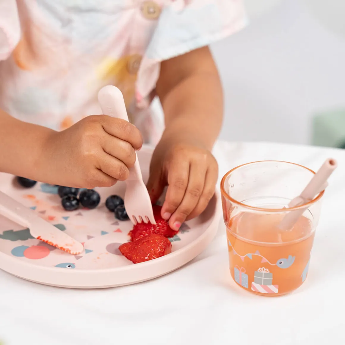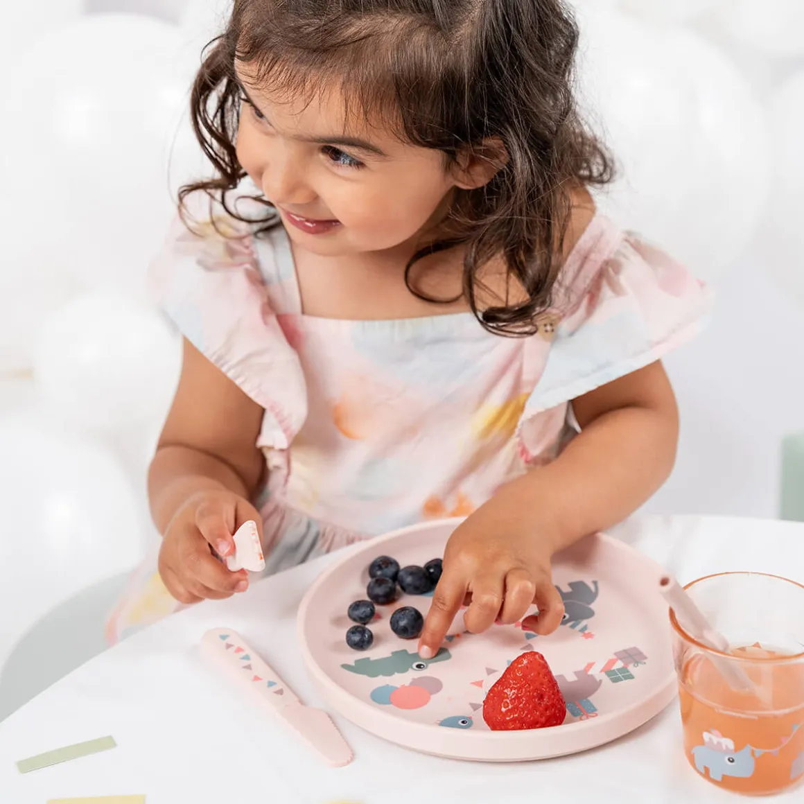 Cet adorable coffret repas Foodie – Celebration – Rose de couleur poudrée est parfait pour faire de chaque repas une célébration. L’ensemble comprend une assiette, un verre, un couteau, une fourchette et un petit livre, tous ornés d’un joli motif représentant les assiettes des Deer friends.