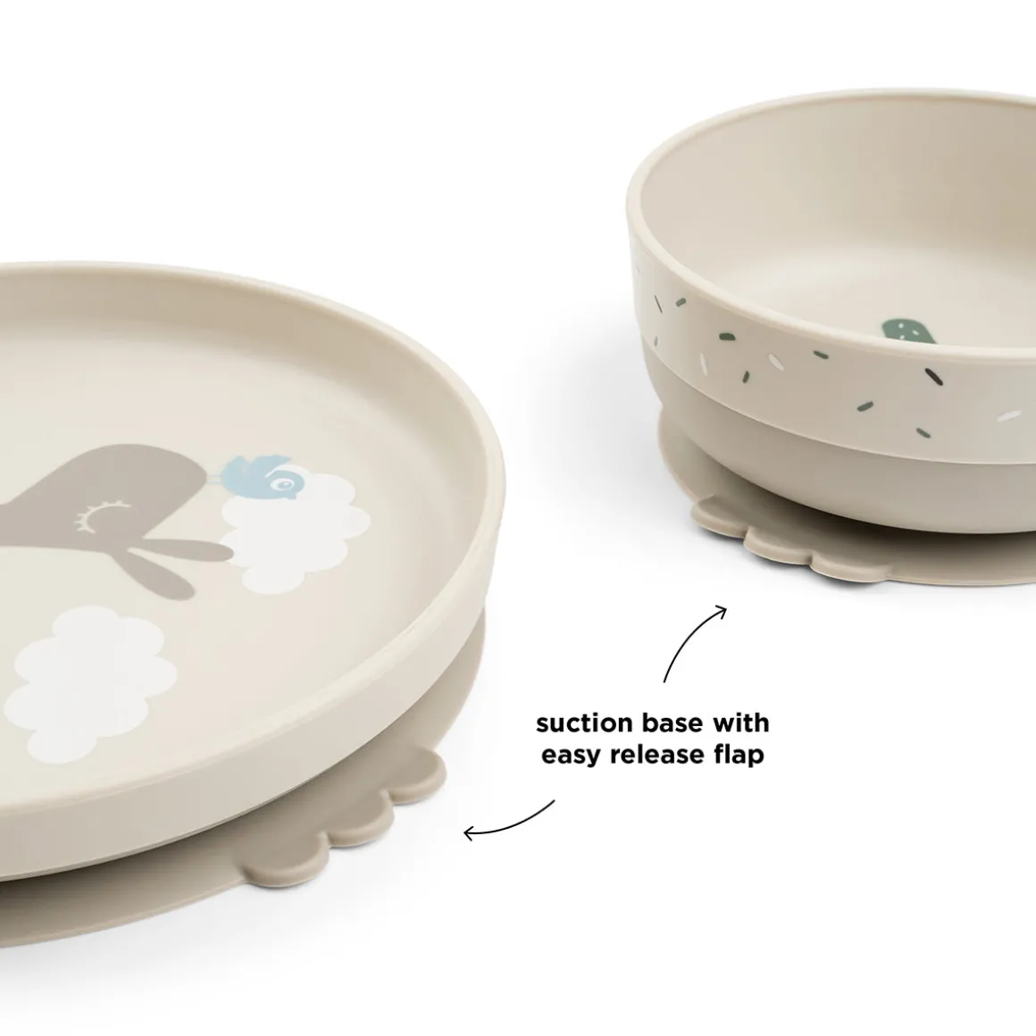 – Base ventouse pratique sur l’assiette et le bol