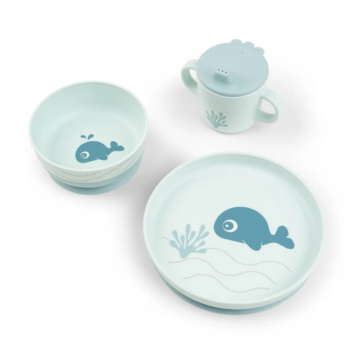 Le coffret repas bleu est orné d’un joli motif représentant Wally en expédition sous-marine. La tasse d’apprentissage à deux anses est décorée de coquillages et d’étoiles de mer. Le bleu foncé ajoute un joli détail bicolore et le bol est orné de vagues rafraîchissantes. Laissez votre enfant plonger.
