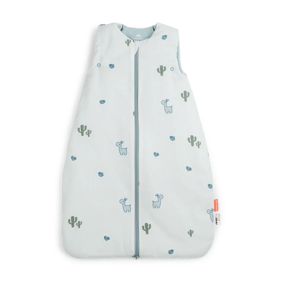 Blottissez-vous contre Lalee quand il est temps d’aller dormir. La mignonne gigoteuse est dans un ton bleu clair, décorée d’un adorable lama, d’un oiseau et de cactus aux couleurs bleues et vertes. Lavable à 40 °C.