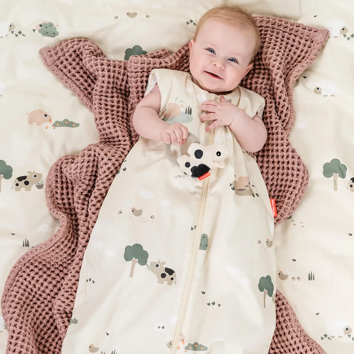 With a TOG value of 2.5, it’s ideal for colder nights. Adjustable armholes ensure a perfect fit, while the YKK safety zipper makes dressing and diaper changes effortless. In a soft sand colour with adorable motifs of Dotti, Pigee, and Sheepy, this sleeping bag wraps your baby in warmth and comfort.