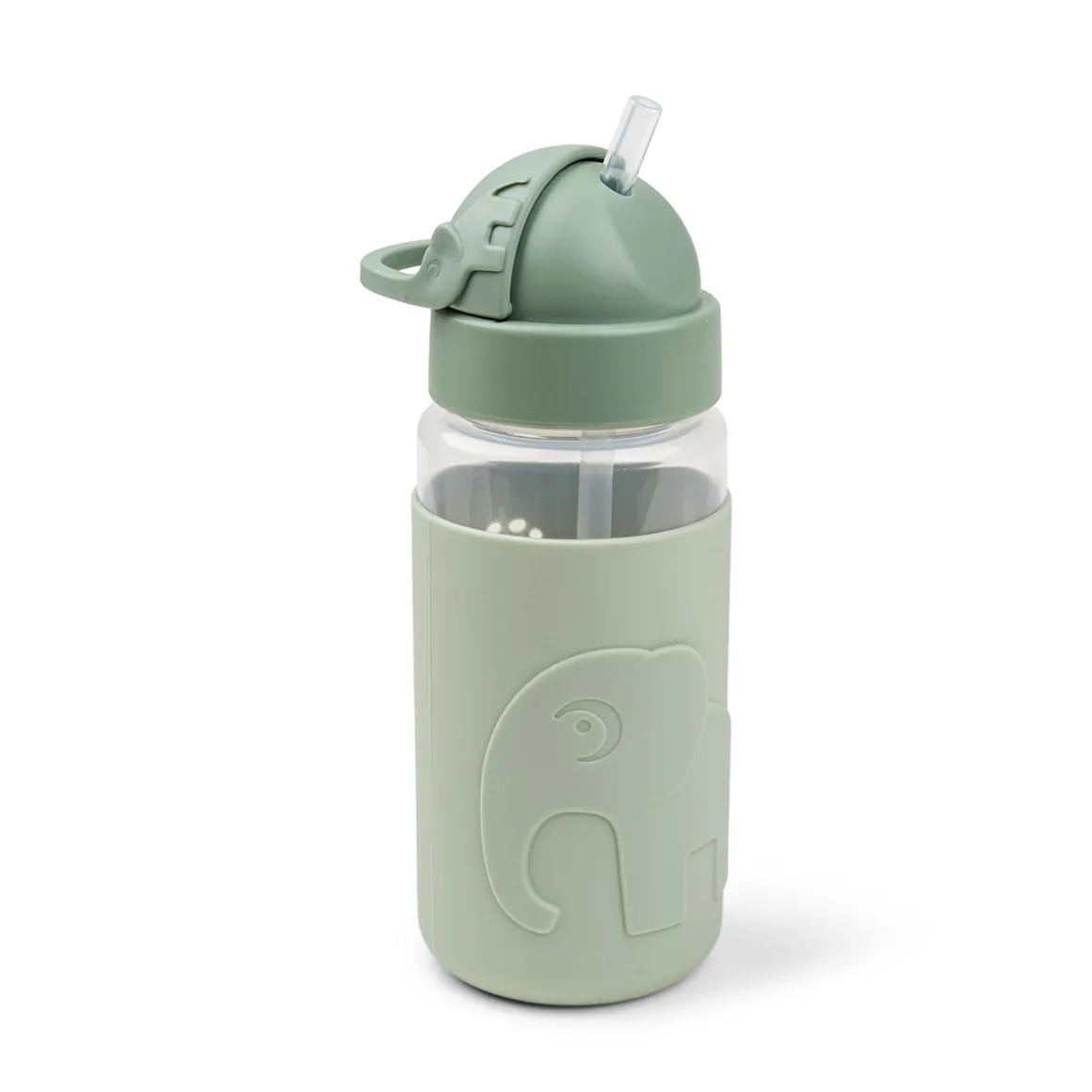 Le couvercle en silicone est embossé avec Elphee et a des trous mignons en forme d’empreinte de pied d’Elphee. Les tons verts embrassent la gourde.