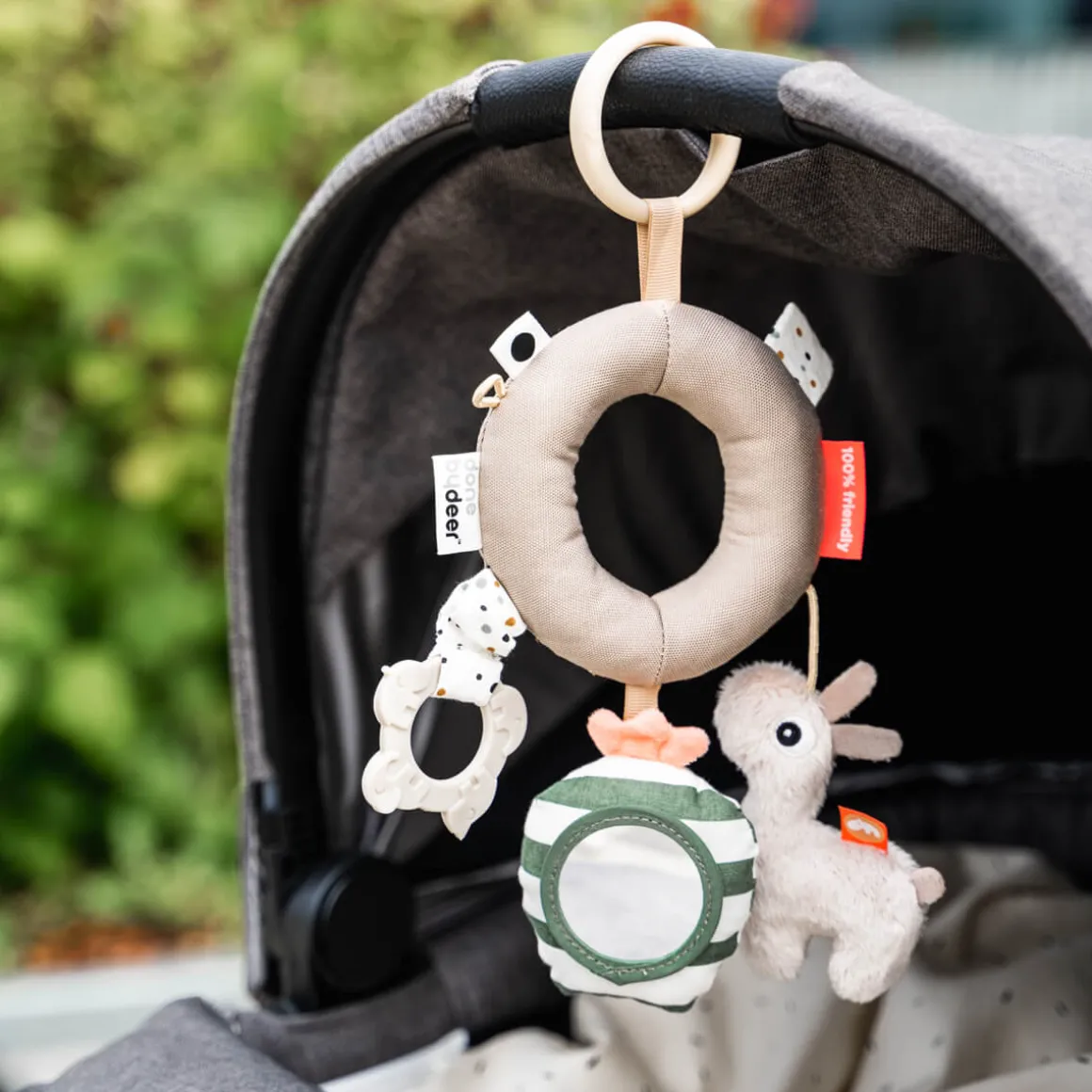 – Un anneau de dentition doux pour les gencives qui démangent, un miroir avec hochet, un Deer friend à la texture douce, des sons de crinckle et des hochets amusants.
