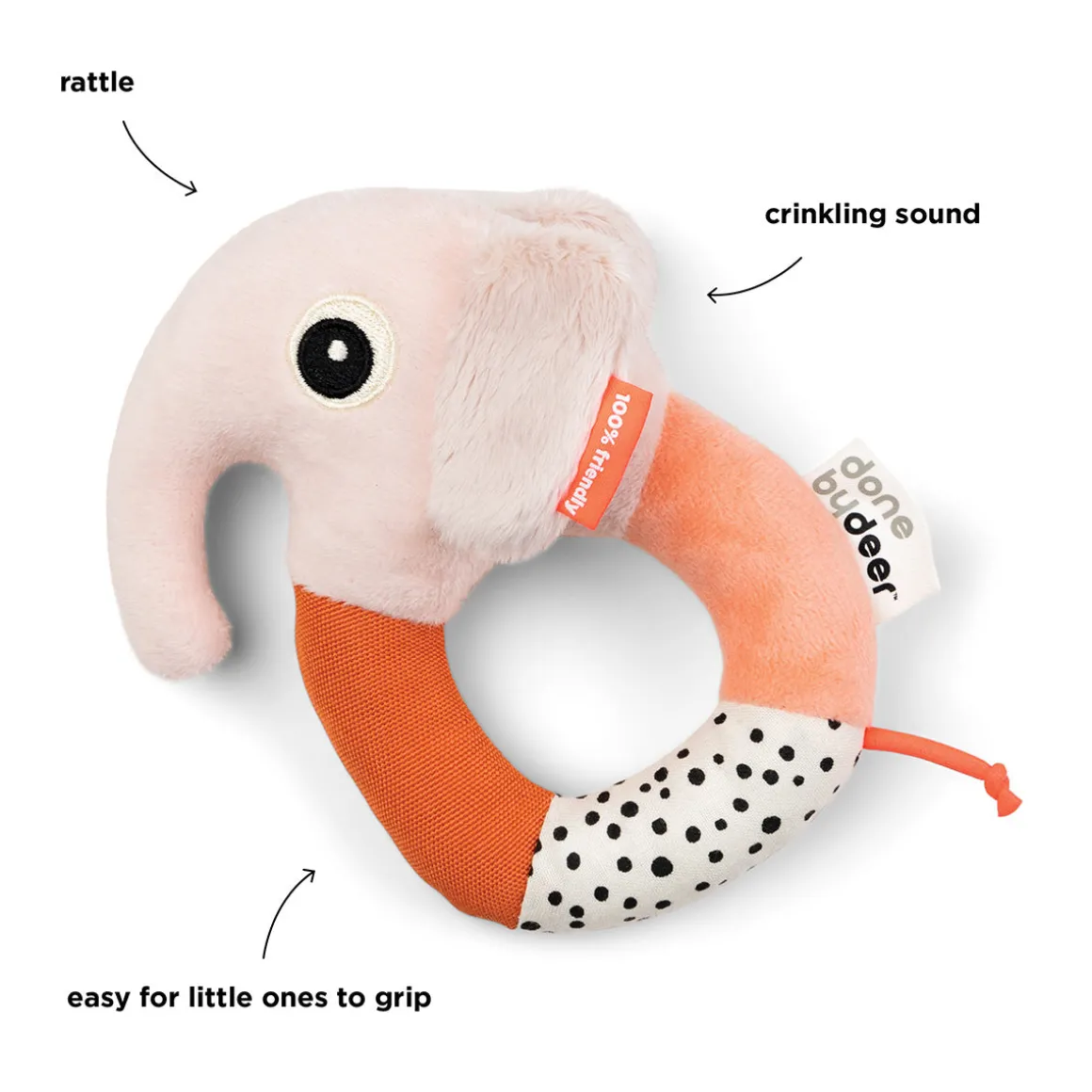 Les enfants s’amuseront beaucoup avec Elphee. Le hochet est composé d’éléments de couleur Rose, Corail et Papaye et d’un élément avec des hochets amusants.