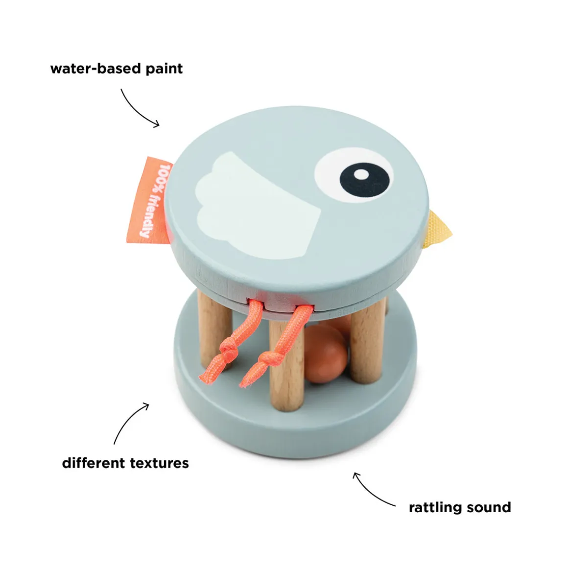 Le hochet en bois – Birdee – Bleu est conçu dans des tons bleus doux avec des détails colorés. Les jouets en bois sont fabriqués à partir de bois provenant de sources responsables et peints avec des peintures à base d’eau exemptes de substances nocives – ce qui permet à votre enfant de les utiliser en toute sécurité.