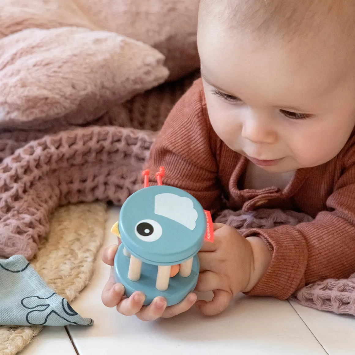 – Comporte de nombreux petits détails sensoriels qui stimulent votre bébé.