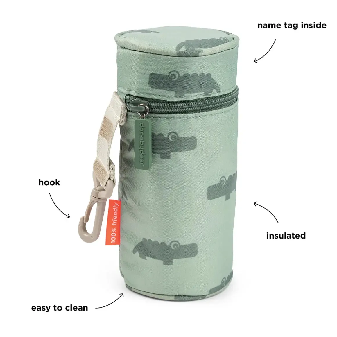 Le porte-bouteille isotherme Croco pour enfants permet de garder la boisson de votre enfant au frais ou au chaud pendant vos déplacements. Le tissu isolant à l’intérieur permet aux liquides de conserver la température souhaitée pendant des heures. Les gourdes Done by Deer s’insèrent parfaitement dans le porte-bouteille.