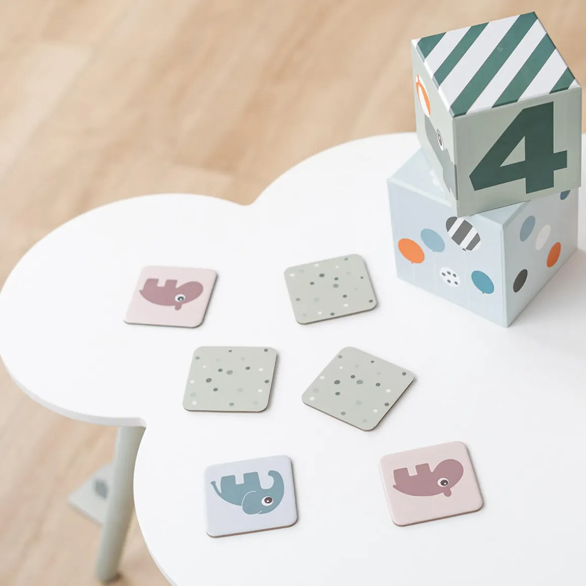 Jeu de mémoire avec 16 cartes en carton décorées de nos Deer friends dans des couleurs amusantes pour une stimulation visuelle. Ce jeu est un excellent outil pour développer la mémoire, la concentration et les capacités cognitives de votre enfant, tout en lui permettant de passer du bon temps ensemble.