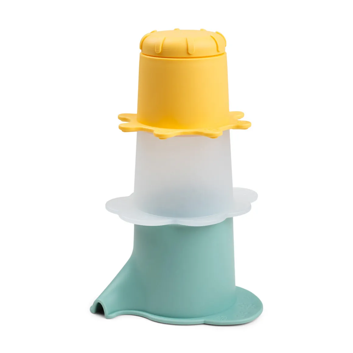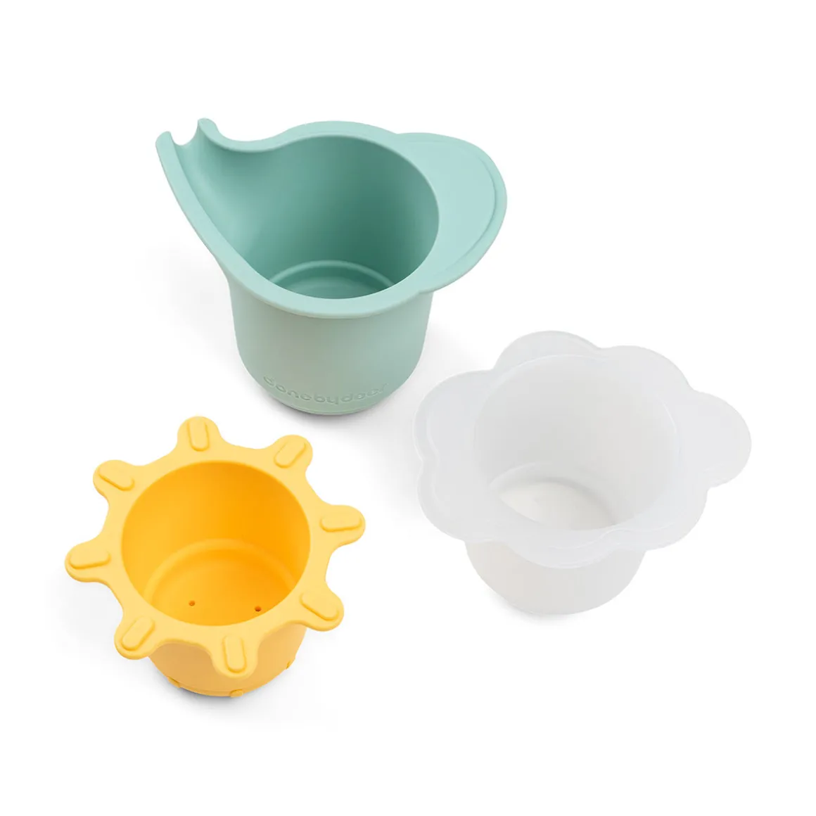 – Contient une tasse bleue en forme d’Elphee, une tasse blanche semi-transparente en forme de nuage avec des trous au fond, et une tasse jaune en forme de soleil avec une fonction d’ouverture et de fermeture.