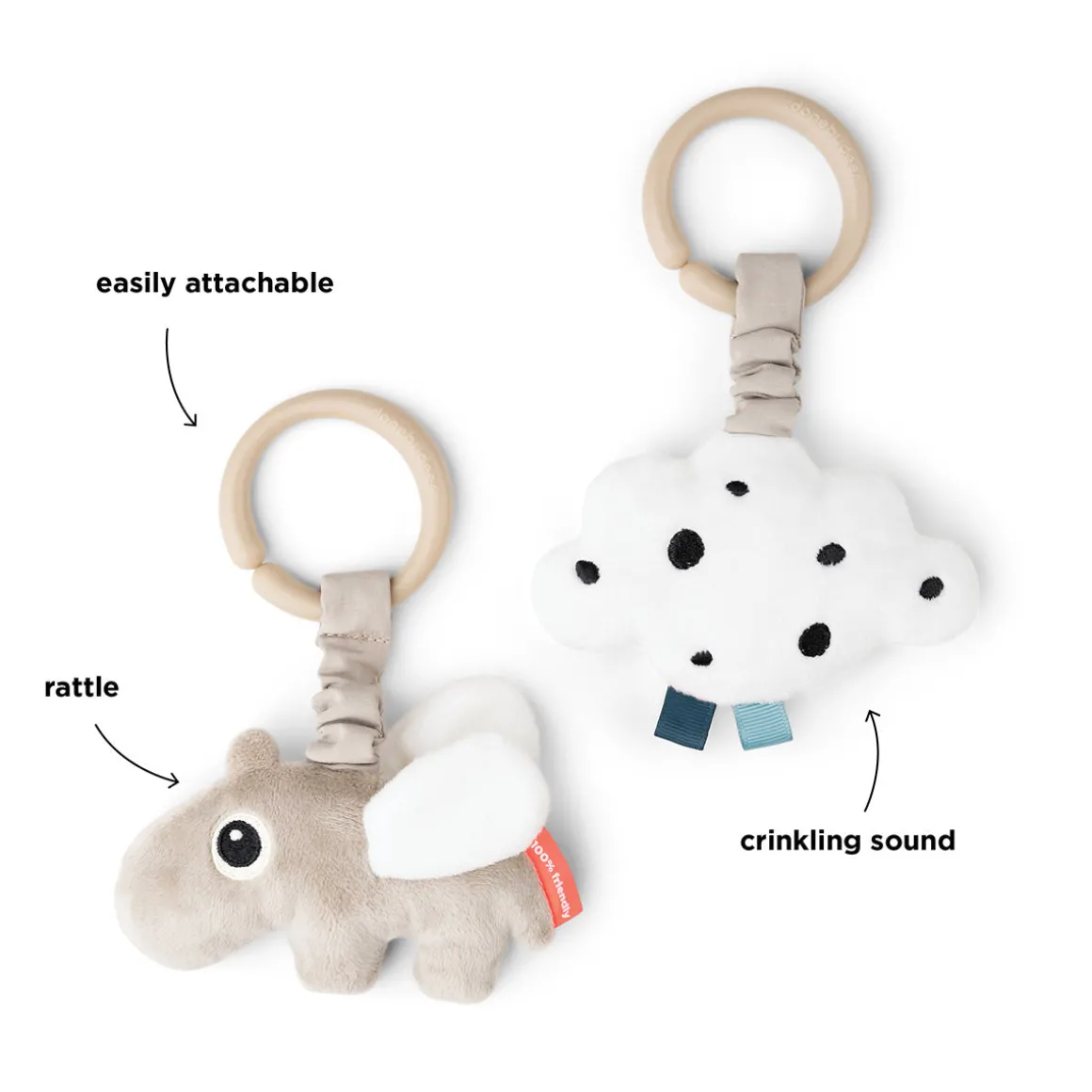 – Facile à emporter et à attacher au landau, à la poussette ou à un centre d’activités