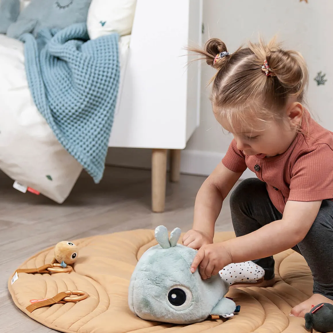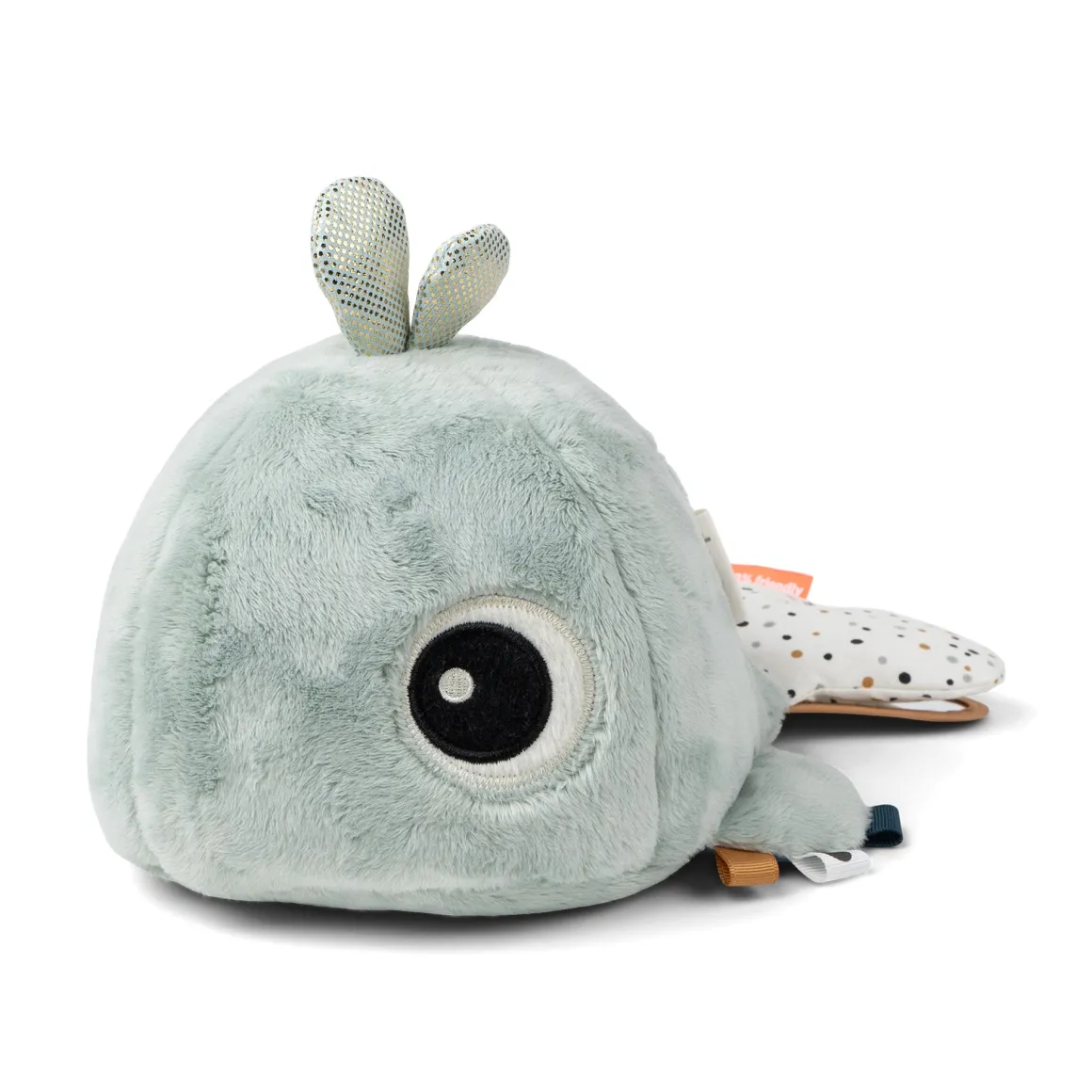 – Les couleurs bleues et les différentes textures de l’adorable baleine stimulent les sens de votre enfant.