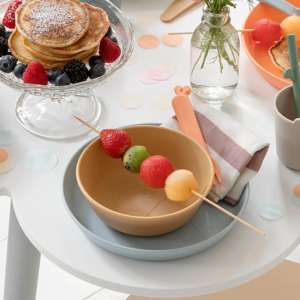 – Les bords intérieurs hauts permettent aux enfants de ramasser facilement les aliments.