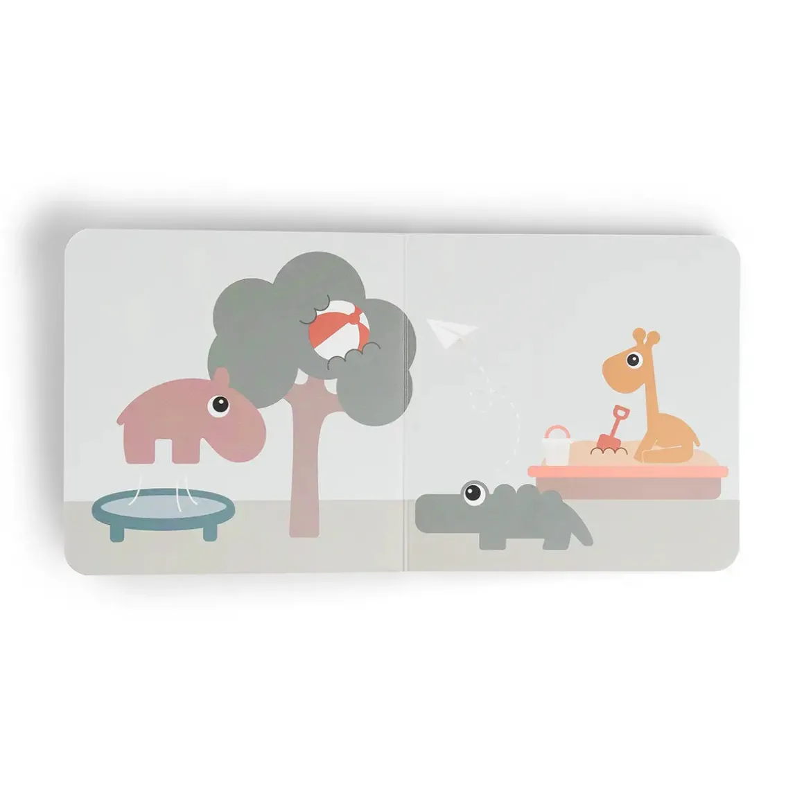 This cute cardboard book encourages your child to use their imagination, inspiring them to make up their own fun stories while improving their language skills. As your little one turns the pages, they’ll also develop fine motor skills and hand-eye coordination.