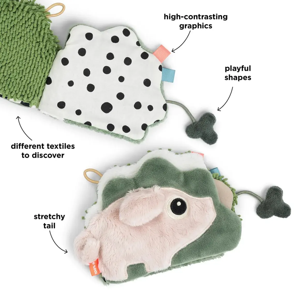 Your little one will love discovering who’s hiding behind the bushes, adding an element of surprise to every page. The elastic loop makes it easy to attach the book to an activity gym or other products, keeping it close for on-the-go fun.