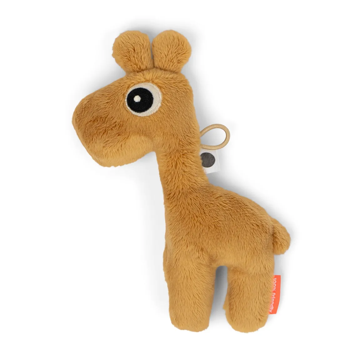 Grâce à la boucle élastique, il est facile d’attacher le petit hochet sensoriel à un tapis d’éveil, à une poussette, à un siège auto ou à un centre d’activités à l’aide d’un lien pour jouets. Le petit hochet Hochet – Raffi – Moutarde est très doux.