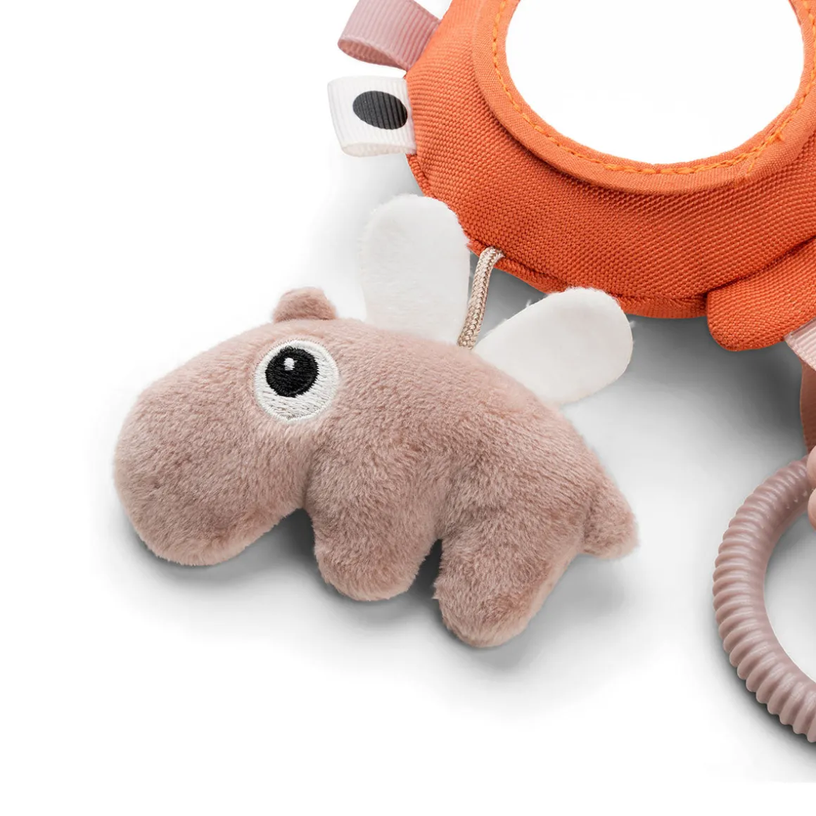 Le miroir d’activités est équipé d’un hochet à ballons, d’un Ozzo et d’un nuage à la texture douce, de deux hochets texturés et de rubans amusants. L’enfant peut facilement attraper les anneaux et tenir le miroir d’activités. Utilisez le lien du jouet pour l’attacher à la poussette, au siège auto ou au coussin réducteur de poussette.