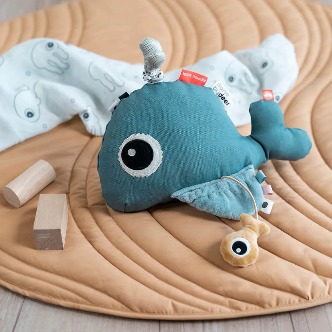 Les nombreuses caractéristiques de Wally favoriseront le développement de votre bébé, de la position sur le ventre à la position assise et à l’exploration. L’adorable baleine tient fermement sur le sol grâce à son sac de sable. La couleur bleue douce de Wally est contrastée par la couleur sable chaude du petit ami poisson.