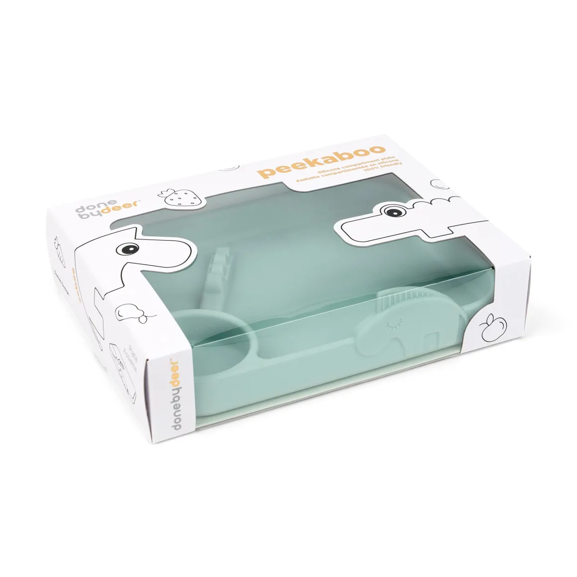 Peekaboo, c’est l’heure de manger ! L’assiette à compartiments Peekaboo est parfaite pour les petits mangeurs difficiles. Séparez les aliments et laissez le zèbre amusant et le crocodile cool éveiller la curiosité de votre enfant lorsqu’ils sortent de l’assiette.
