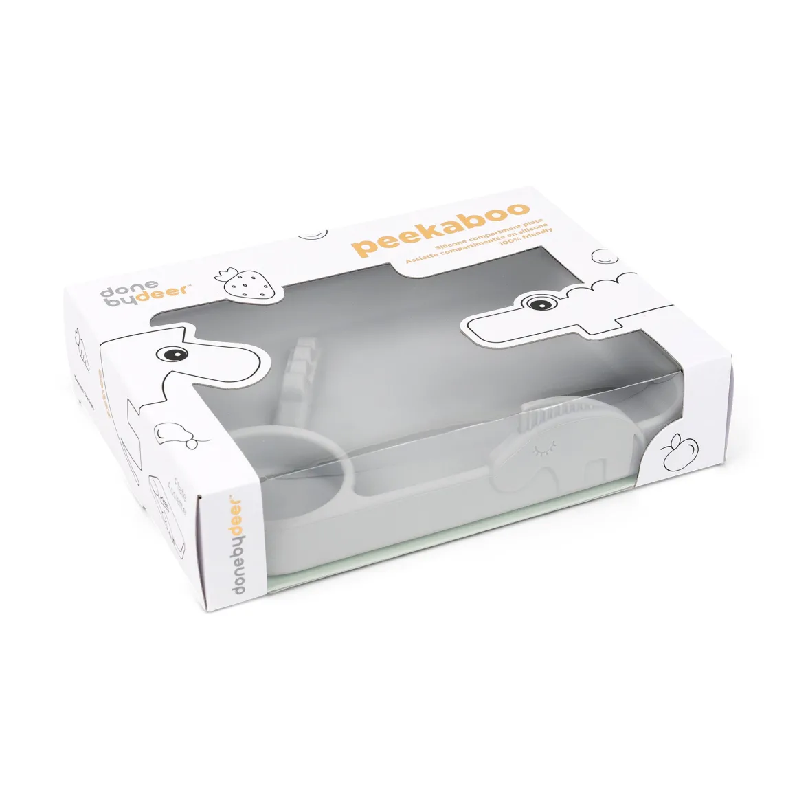 Peekaboo, c’est l’heure de manger ! L’assiette à compartiments Peekaboo est parfaite pour les petits mangeurs difficiles. Séparez les aliments et laissez le zèbre amusant et le crocodile cool éveiller la curiosité de votre enfant lorsqu’ils sortent de l’assiette.