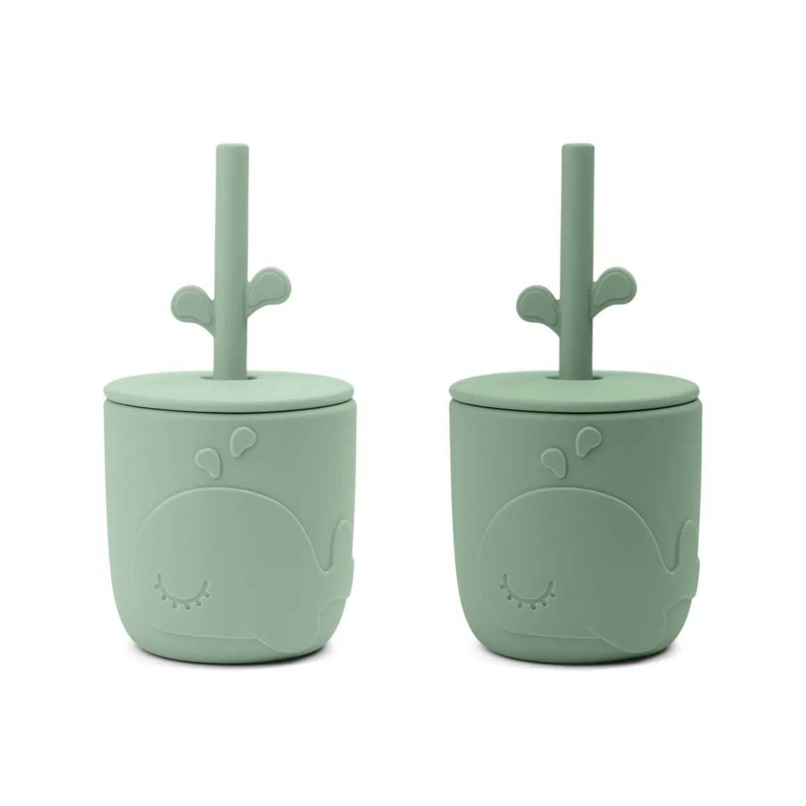 Le paquet de 2 tasses à paille est disponible en deux tons de vert. Les pailles en silicone s’adaptent parfaitement à toutes les tasses des enfants sans s’incliner, et les couvercles peuvent être utilisés pour les tasse d’apprentissage Peekaboo et les couvercles peuvent également être utilisés pour le gobelet à bec Peekaboo.