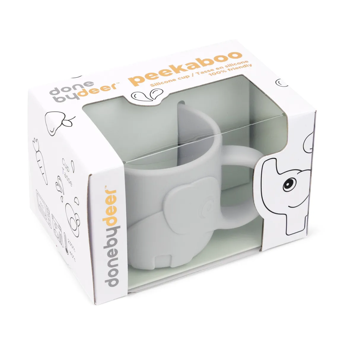 Laissez Elphee montrer la voie et encouragez les petits mangeurs à boire. La tasse grise pour enfants est assortie aux autres articles de la collection. collection de vaisselle Peekaboo. Elle est emballée dans une boîte cadeau décorée – une excellente idée de cadeau pour un enfant.