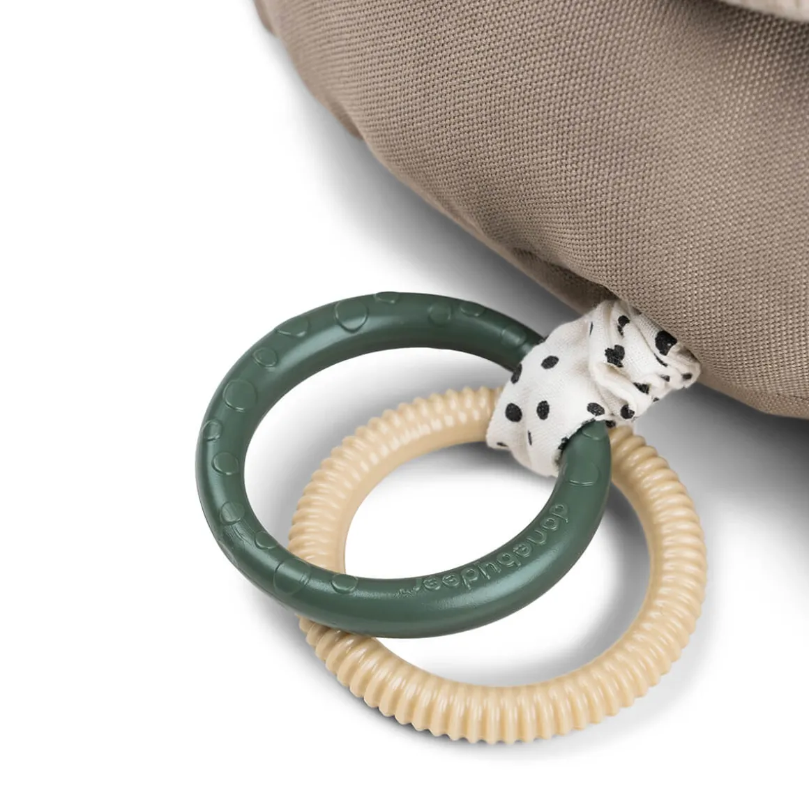 Tissu : 100% polyester. Rembourrage : 100 % de fibres de polyester, sac de sable de quartz. Anneau de dentition : 100% TPE. Anneaux : 100% PP.