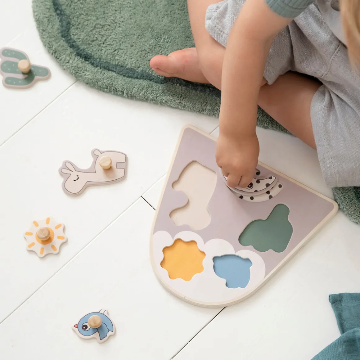 Les puzzles à chevilles en bois de Lalee sont fabriqués dans de jolies couleurs sable et à partir de bois provenant d’une source d’approvisionnement responsable. Il est peint avec des peintures à base d’eau exemptes de substances nocives, ce qui permet à votre enfant de l’utiliser en toute sécurité.