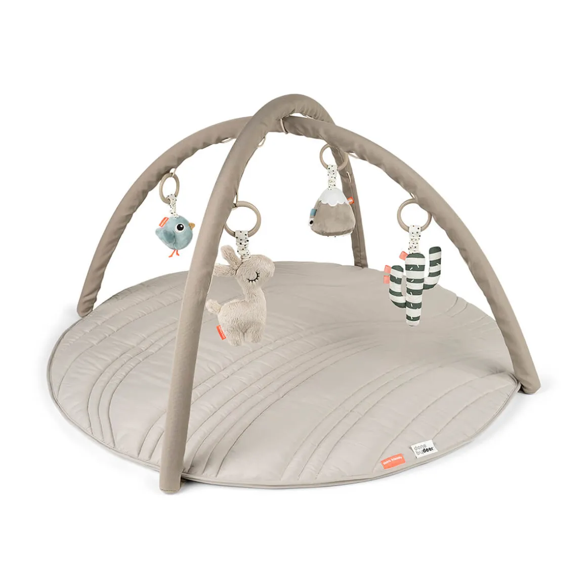 Accrochez les jouets dans 13 positions différentes sur les arches. Lalee et le cactus crépitent lorsqu’on les touche, Birdee hochet, et le petit miroir sourit en retour et contient une clochette – tout cela pour l’éveil de votre bébé.