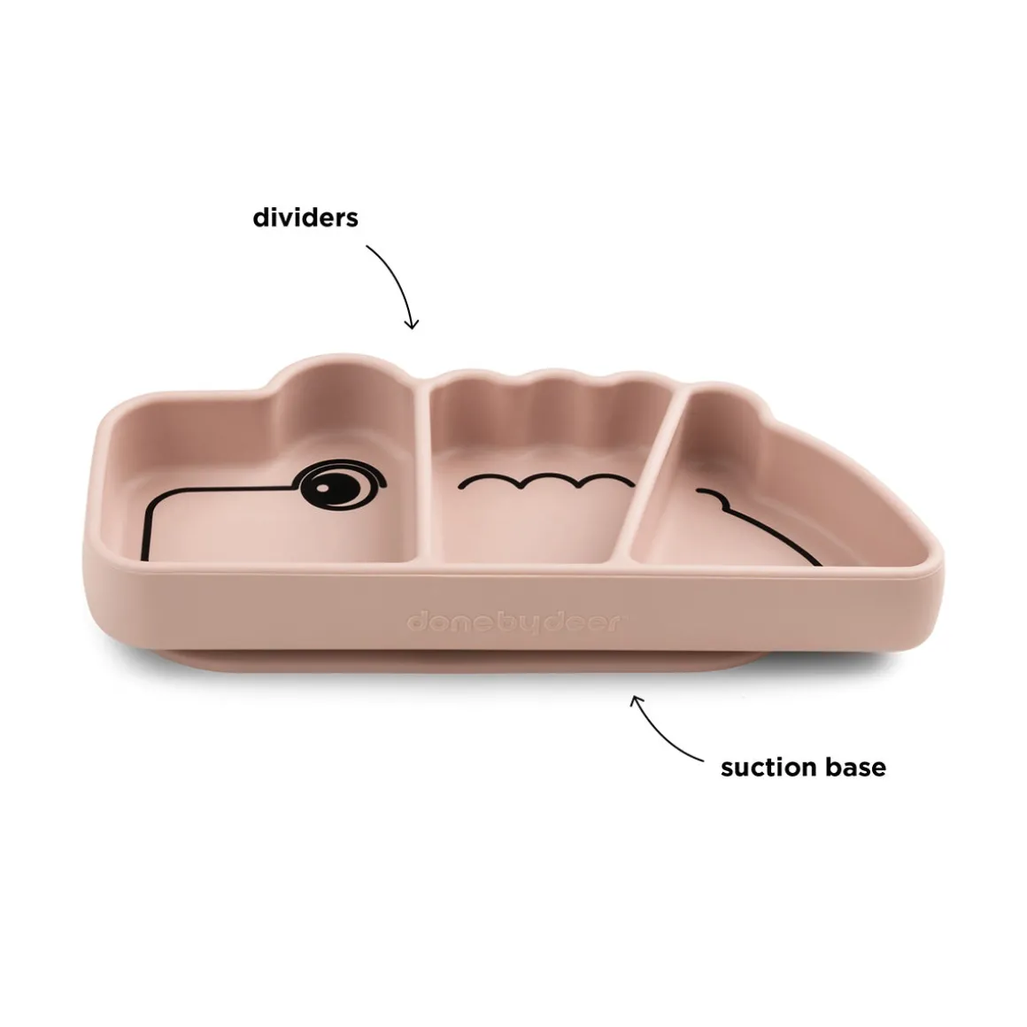 Appuyez sur l’assiette et elle se collera à la plupart des assiettes lisses – grâce à une succion naturelle – empêchant les enfants de la pousser, de la faire basculer ou de la jeter. Un rabat facile à détacher est caché sous la queue du Croco.