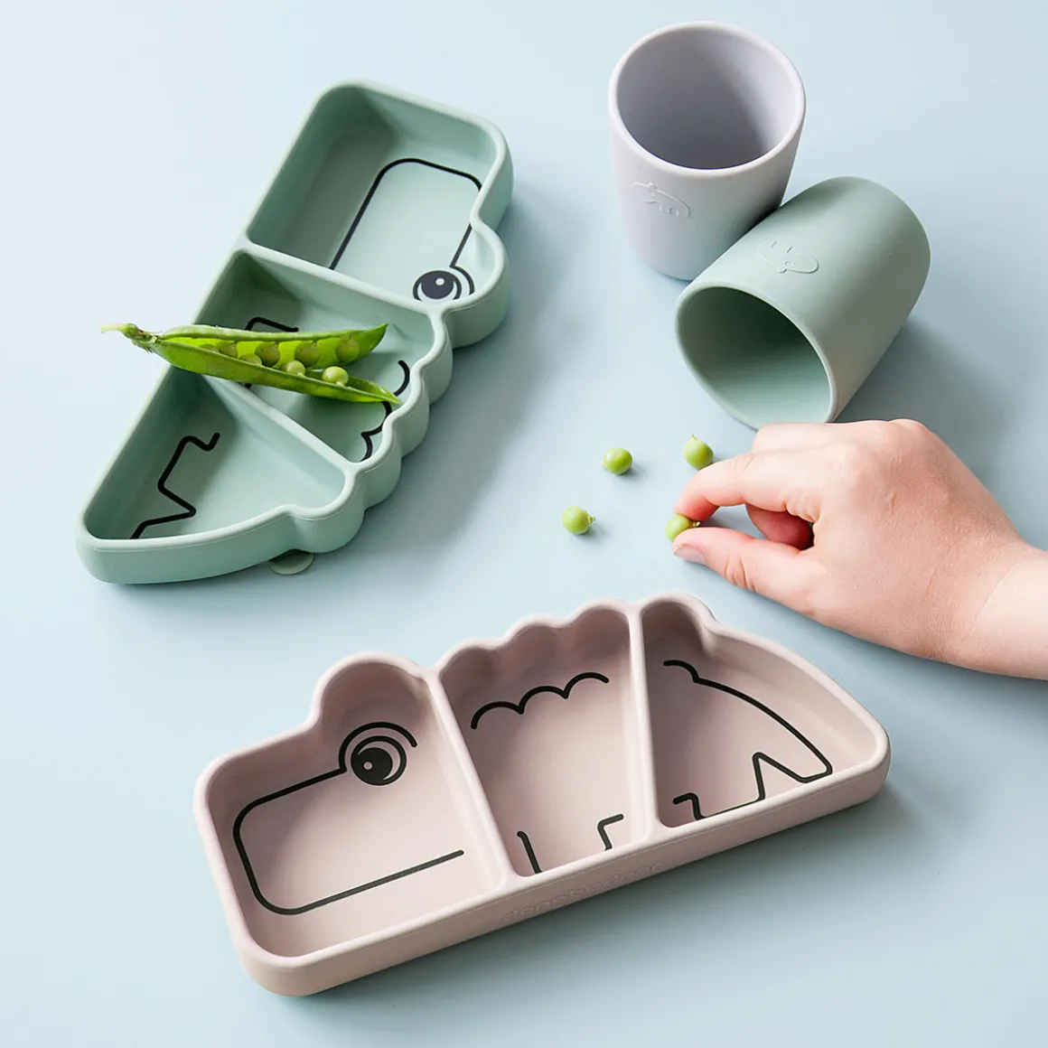Croco est prêt à rendre l’heure du goûter amusante ! L’assiette à goûter stick & stay avec ses trois assiettes séparées restera en place et aidera les petits mangeurs à prendre leur goûter.