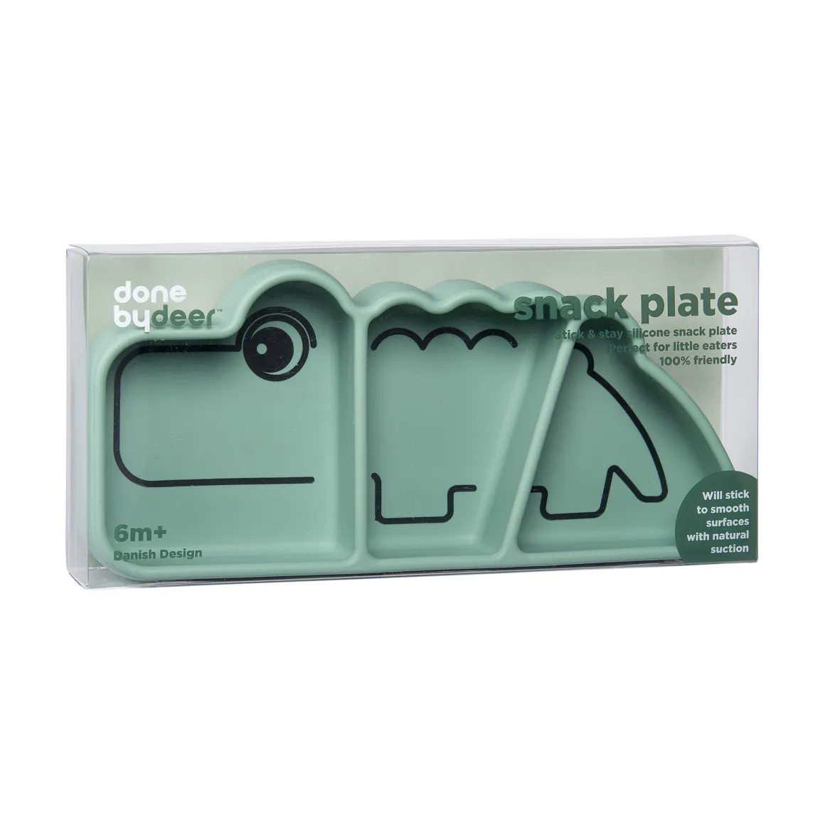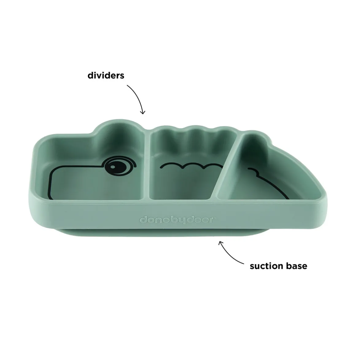 Appuyez sur l’assiette à compartiments en silicone et elle se collera à une surface lisse – avec une succion naturelle – empêchant les enfants de la pousser, de la faire basculer ou de la jeter. Un rabat facile à détacher est caché sous la queue de Croco.