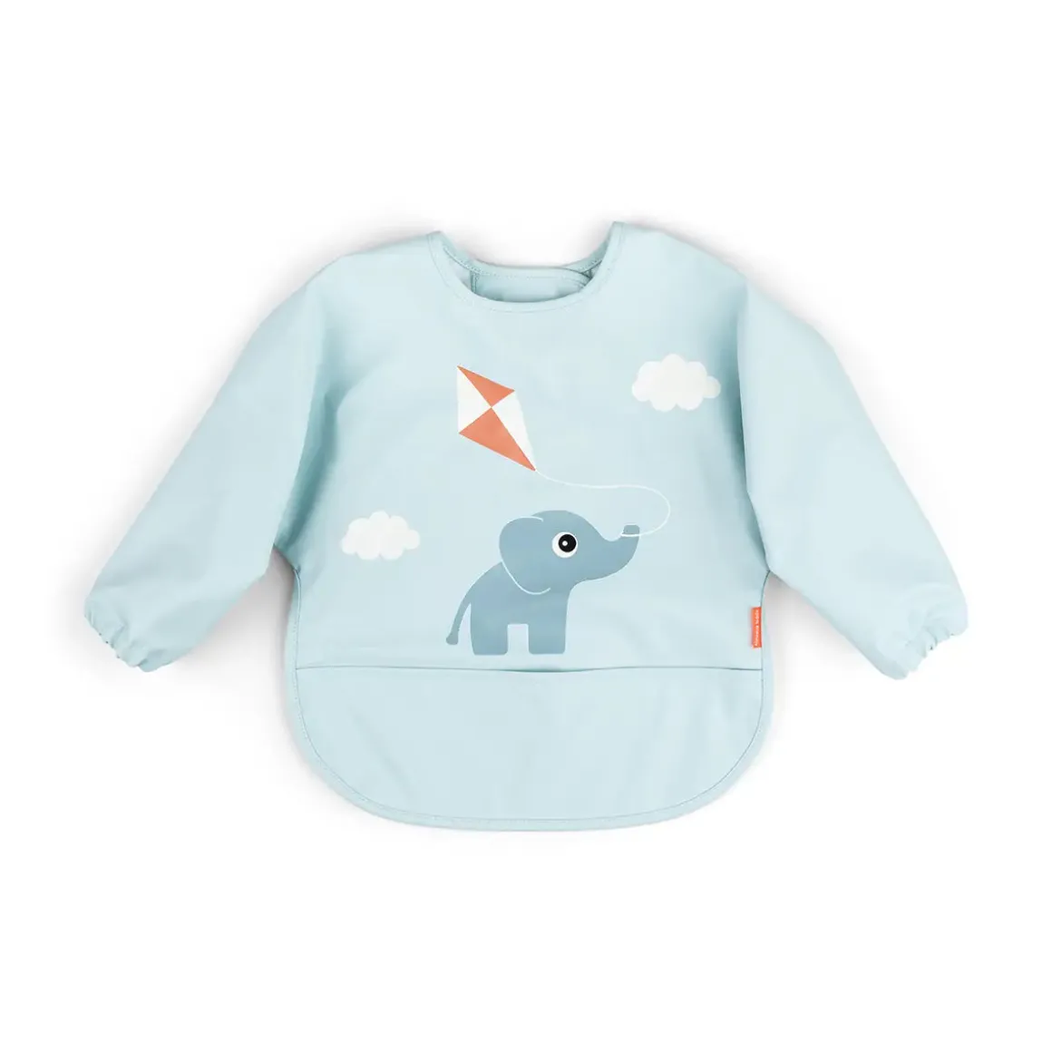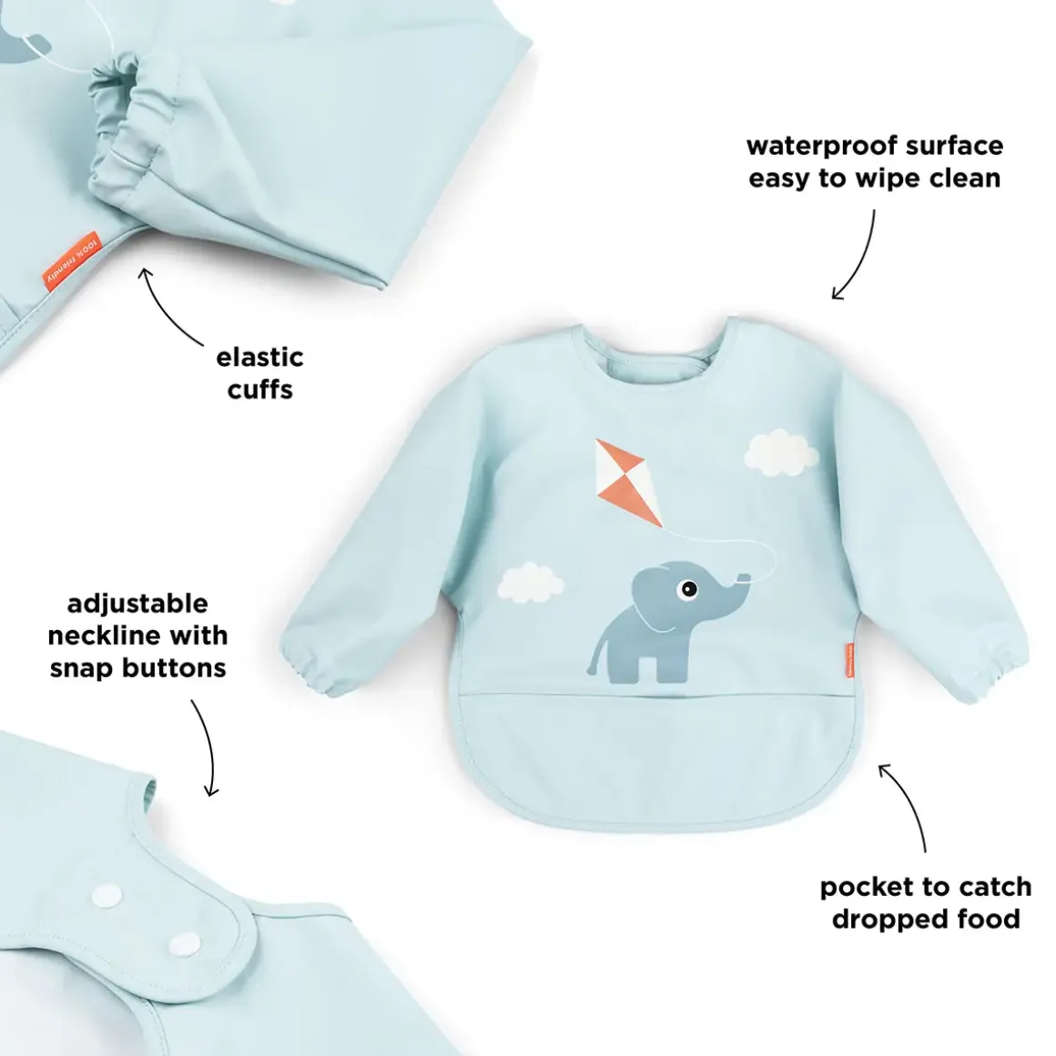 Ce ravissant bavoir bleu est orné d’un joli motif représentant Elphee en train de faire voler un cerf-volant. Le bavoir assure la propreté avec sa surface imperméable, protégeant les vêtements des déversements et des salissures. L’ajout de manches protectrices offre une couverture supplémentaire, protégeant ainsi les vêtements de votre enfant.