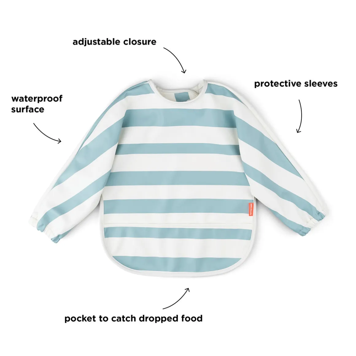 Apprendre à manger tout seul peut être salissant ! Le bavoir à poche à manches protège votre petit mangeur pendant les repas ou lorsqu’il fait du coloriage, de la peinture ou d’autres activités créatives. Une double fermeture réglable permet de s’assurer qu’il convient aussi bien aux bébés qu’aux jeunes enfants.