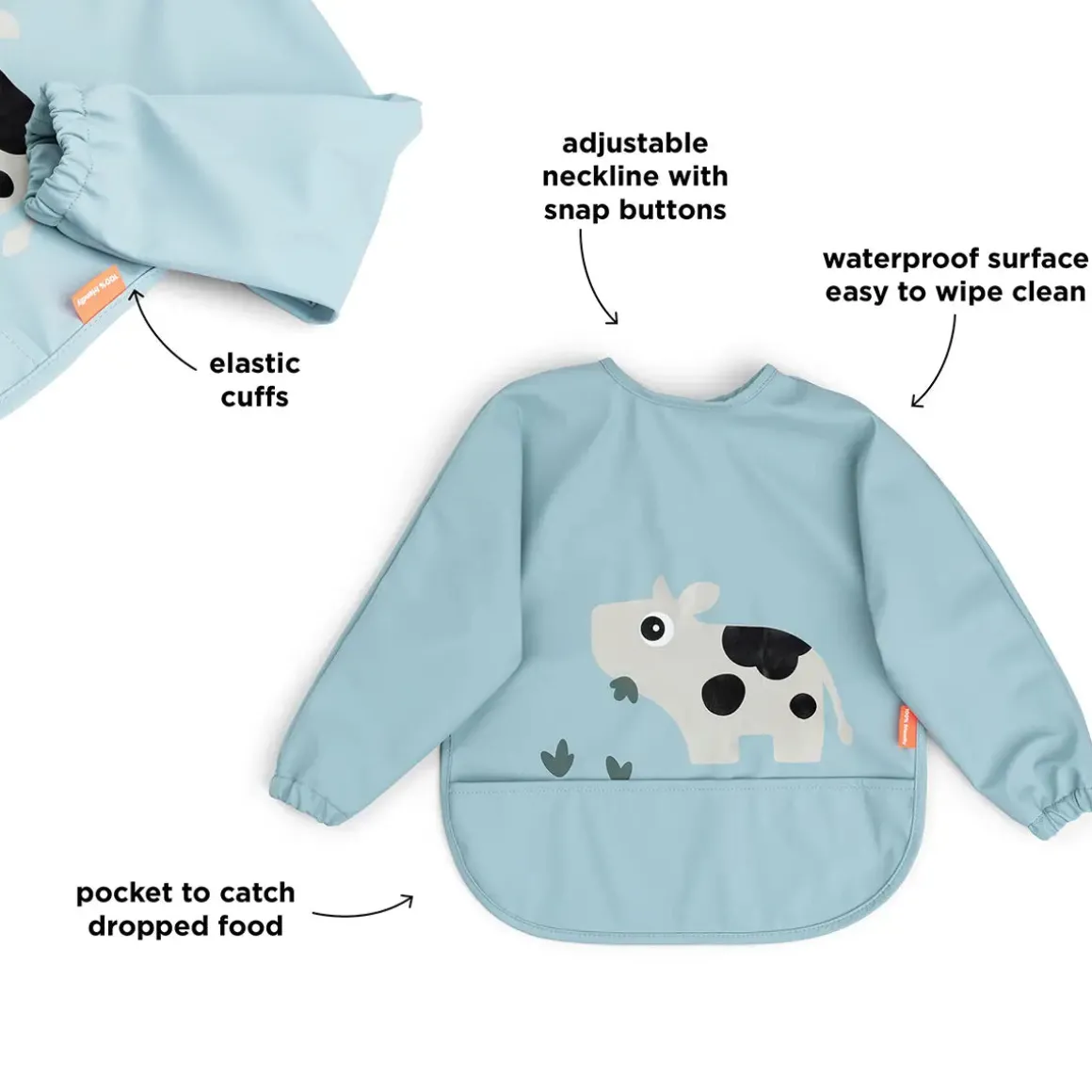 This lovely sleeved bib is designed to keep your little one clean and dry during mealtime. Featuring a pocket to catch dropped food, it helps minimise mess and make cleanup easier.