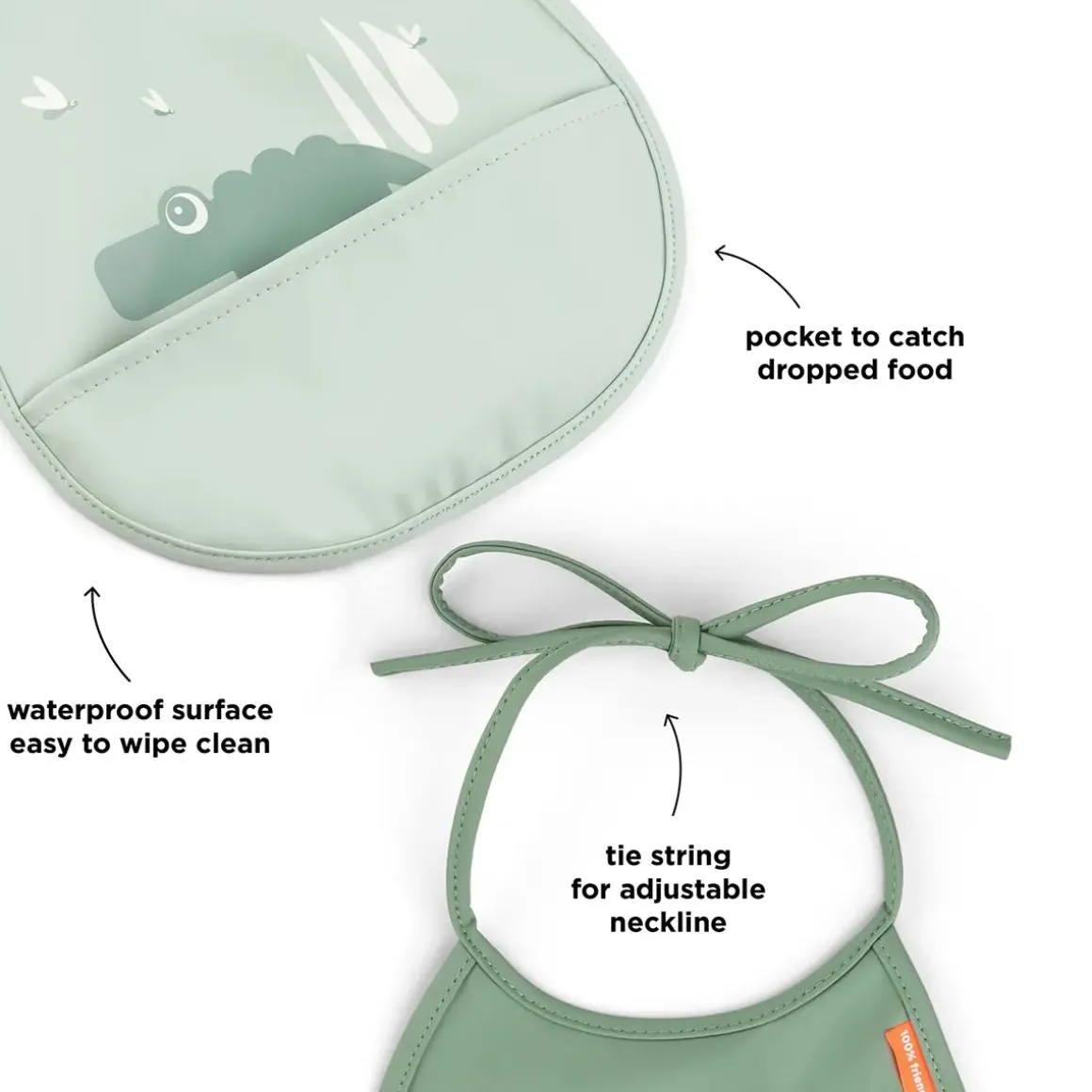 Notre petit lot de 2 bavoirs à poche est un ajout mignon à la nouvelle routine de repas de votre enfant. Ces charmants bavoirs se déclinent dans des teintes vertes fraîches et présentent des motifs ludiques de Croco et de Birdee.