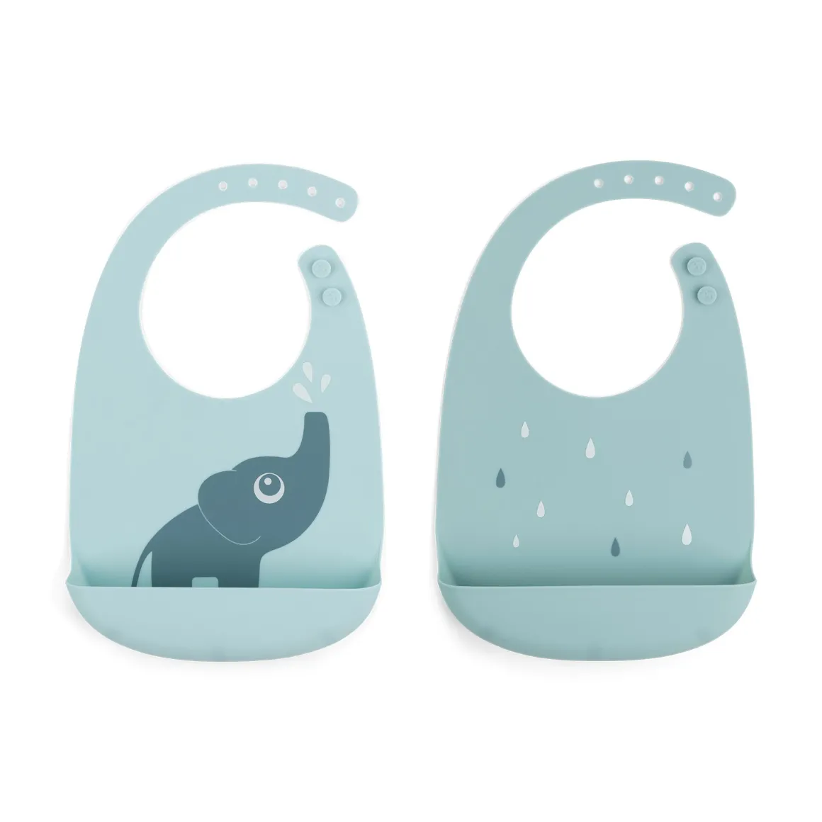 Les adorables bavoirs bleus sont décorés de l’Elphee, l’ami du Deer, et de gouttes d’eau amusantes. Le bavoir éléphant en silicone est facile à nettoyer avec un chiffon ou à laver au lave-vaisselle.