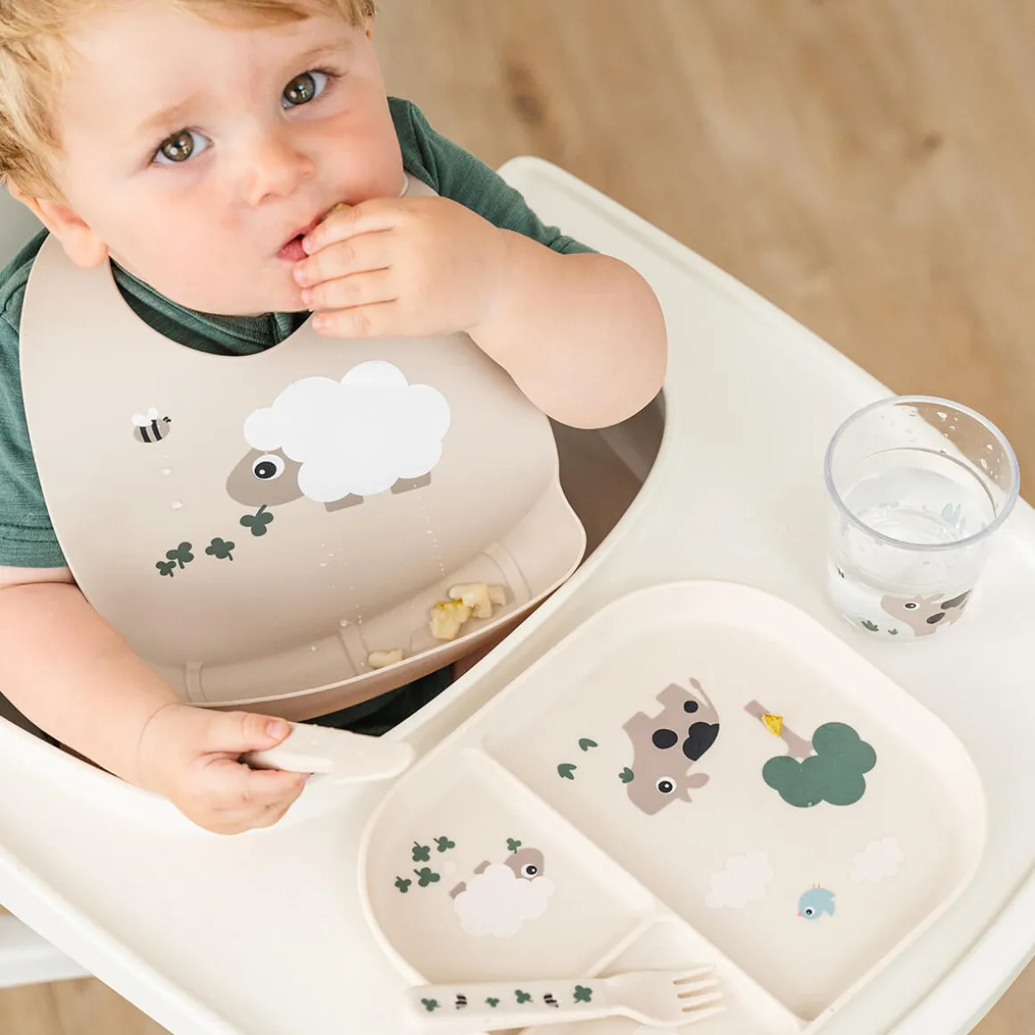 Made from soft, food-grade silicone free from BPA and harmful substances, it’s gentle on your little one and easy to wear. Simply wipe clean or pop it in the dishwasher for effortless cleaning. In a soft sand colour with a playful Sheepy motif, this bib adds a fun touch to every meal.