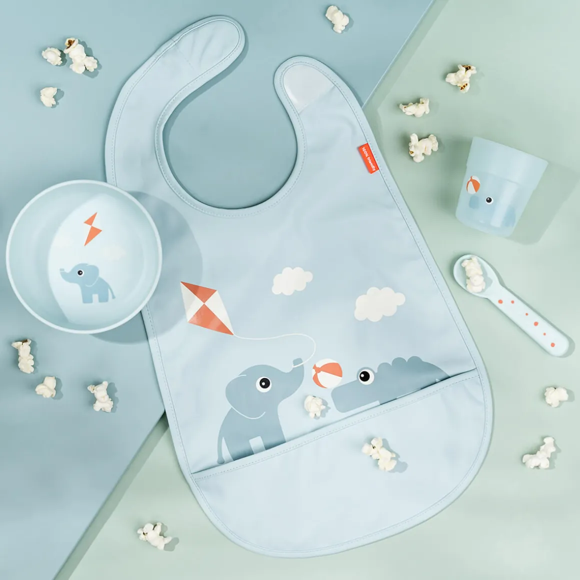 Ce bavoir pratique avec velcro, d’une jolie couleur bleue, est conçu pour rendre l’heure des repas amusante pour vous et votre enfant. Avec son motif ludique représentant Elphee et Croco dans la cour de récréation, ce bavoir ajoute une touche d’espièglerie à chaque repas.