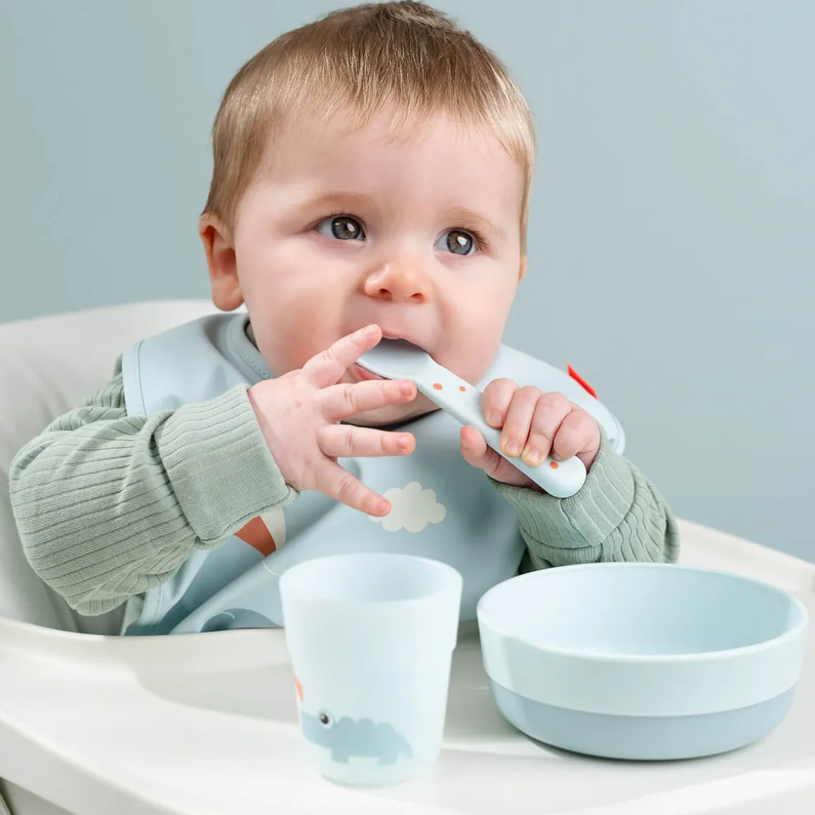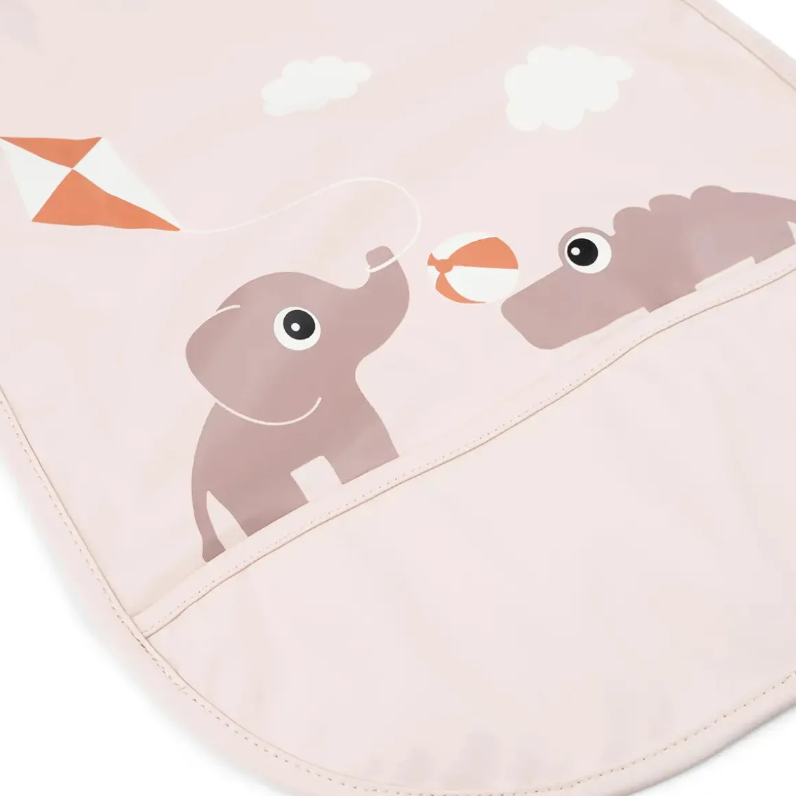 Ce bavoir pratique avec Rose, d’une jolie couleur poudrée, est conçu pour rendre l’heure des repas amusante pour vous et votre enfant. Avec son motif ludique représentant Elphee et Croco dans la cour de récréation, ce bavoir ajoute une touche d’espièglerie à chaque repas.