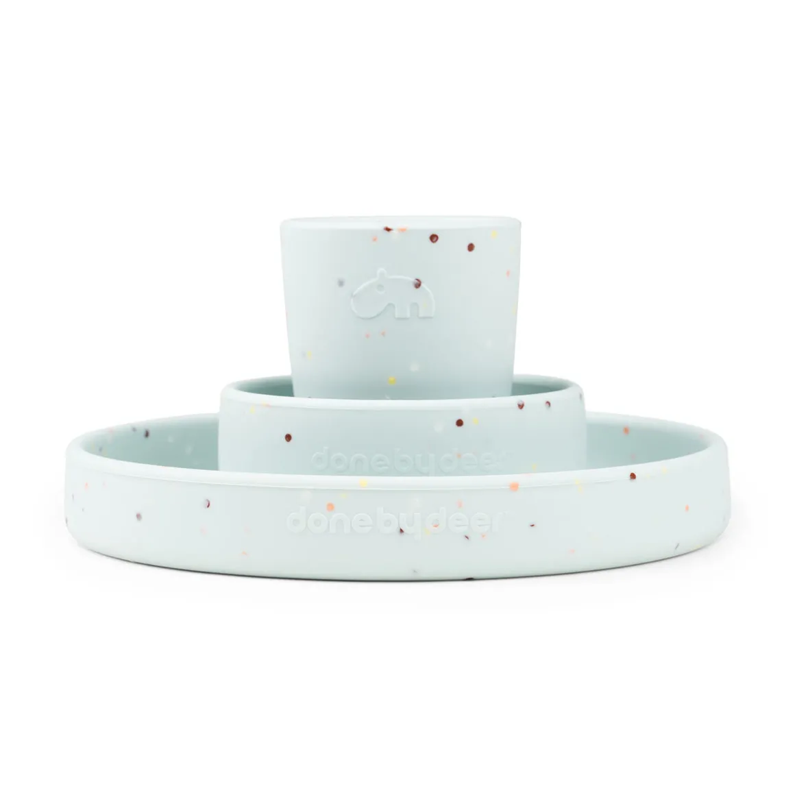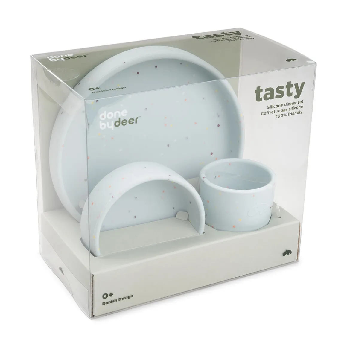 Le coffret repas en silicone avec confettis ajoutera de l’éclat à chaque repas. Le set de départ pratique en silicone antidérapant et facile à prendre en main comprend une assiette pour enfant, un bol et une mini tasse. Une vaisselle parfaite pour les bébés et les enfants en bas âge.