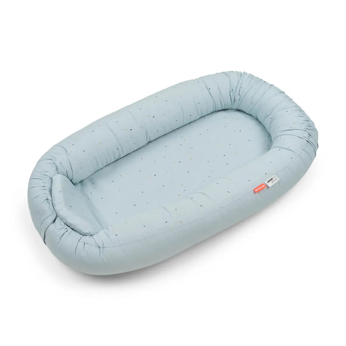 Le Cozy nest – Confetti – Bleu clair est parsemé de confettis festifs à l’intérieur et présente une couleur bleue unie à l’extérieur. Le nid d’enfant est fabriqué en coton doux avec un rembourrage en polyester et est doté d’un matelas en mousse souple d’une seule pièce.